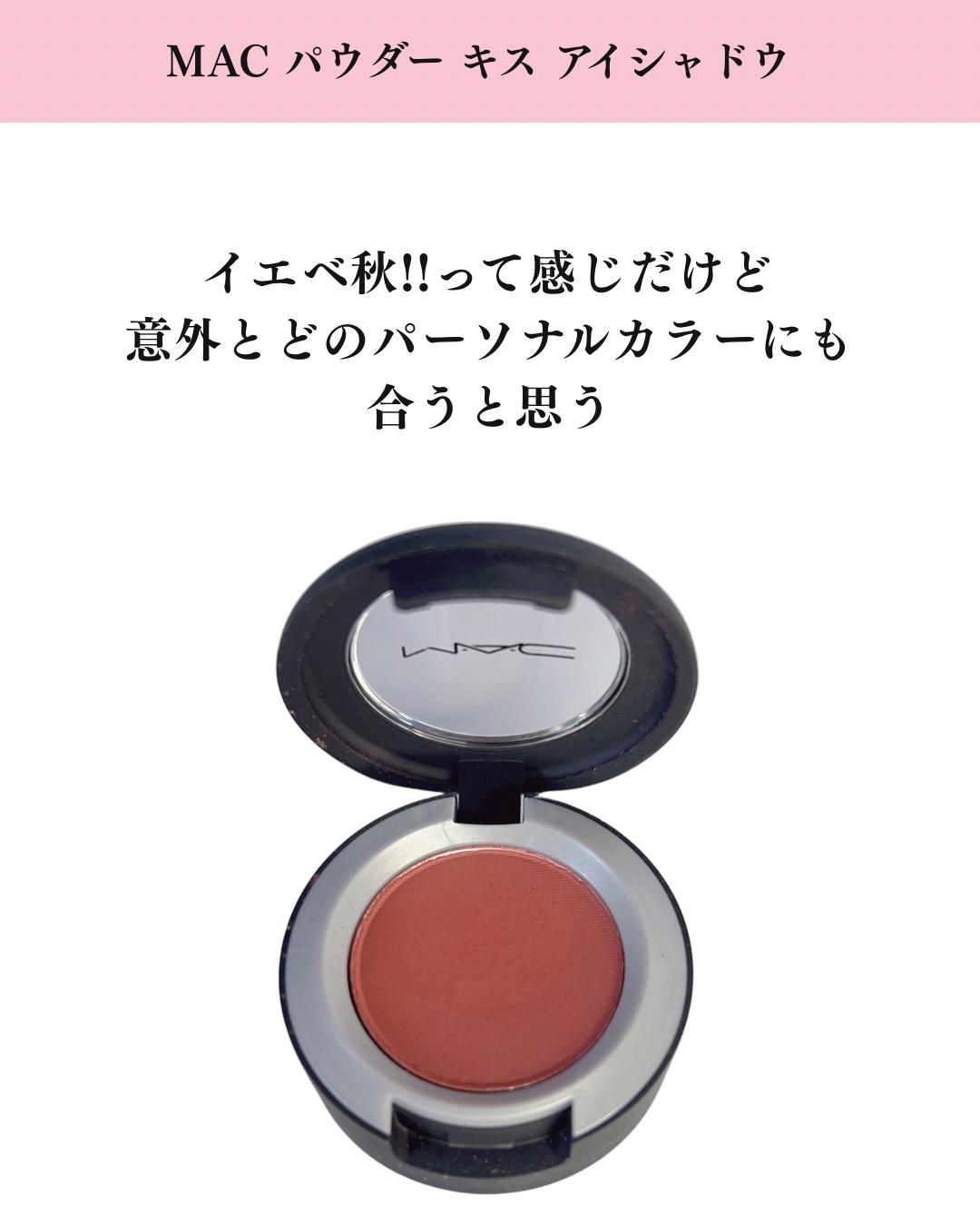 MACパウダーキスアイシャドウ「デボーテッドトゥチリ」ひと塗りで、ふんわり色っぽい目元に。マットなのにしっとり、にじむような赤みブラウンが絶妙すぎる。ナチュラルにもモードにも使えて、1色でも主役級♡#MACアイシャドウ#パウダーキス#デボーテ...
