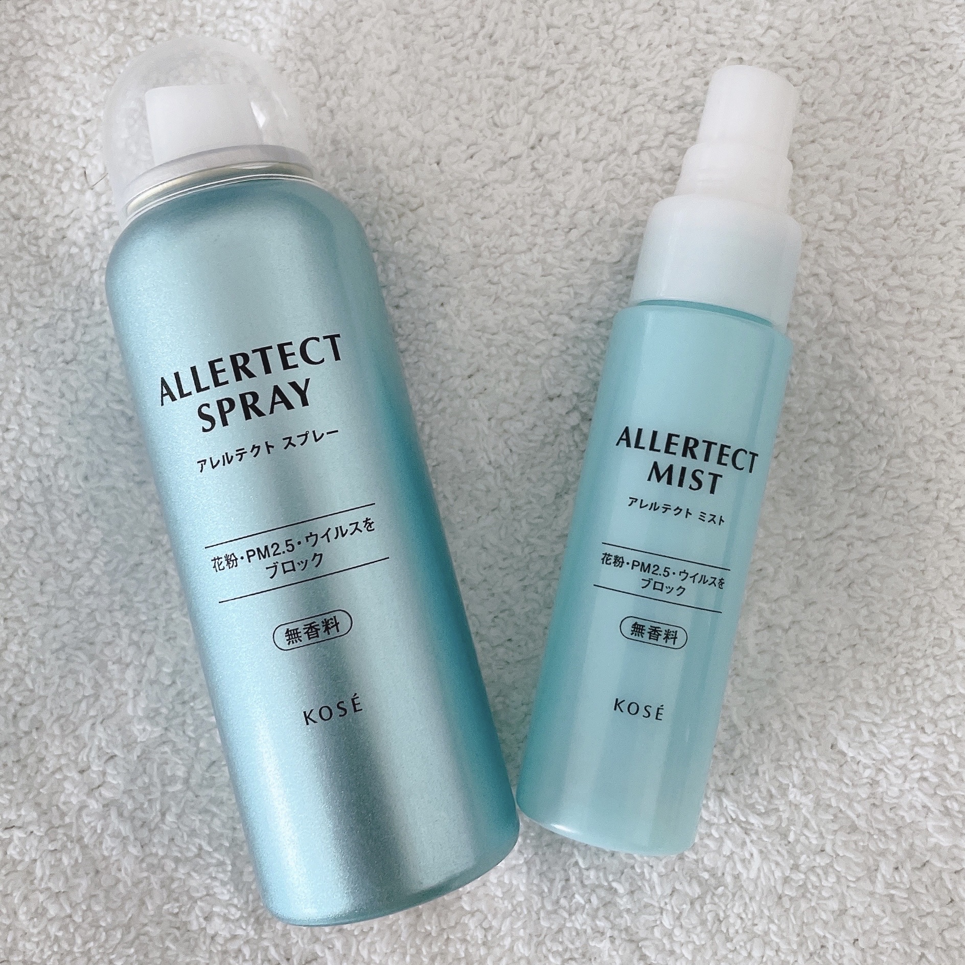コーセーコスメニエンスアレルテクトスプレー吹きかけるだけで、花粉・PM2.5・ウイルスの付着を抑制するブロックスプレー🚿微小なポリマーによる、花粉・PM2.5・ウイルスの肌や髪への付着を抑えてくれます。使用していたミストが無くなったので、スプレータイプを購入ミストより使いやすくて良かったです○季節の変わり目は特にくしゃみ鼻水が止まらなくなるので、欠かせない!全てをブロックしてくれるわけではないので、多少くしゃみ鼻水が出たりはしますが、してない時よりスプレーした時の方が抑えられてると思います◎外に出る前にスプレーして、帰宅後すぐシャワーに入れないときは髪に吹きかけリフレッシュするのに使用してます。