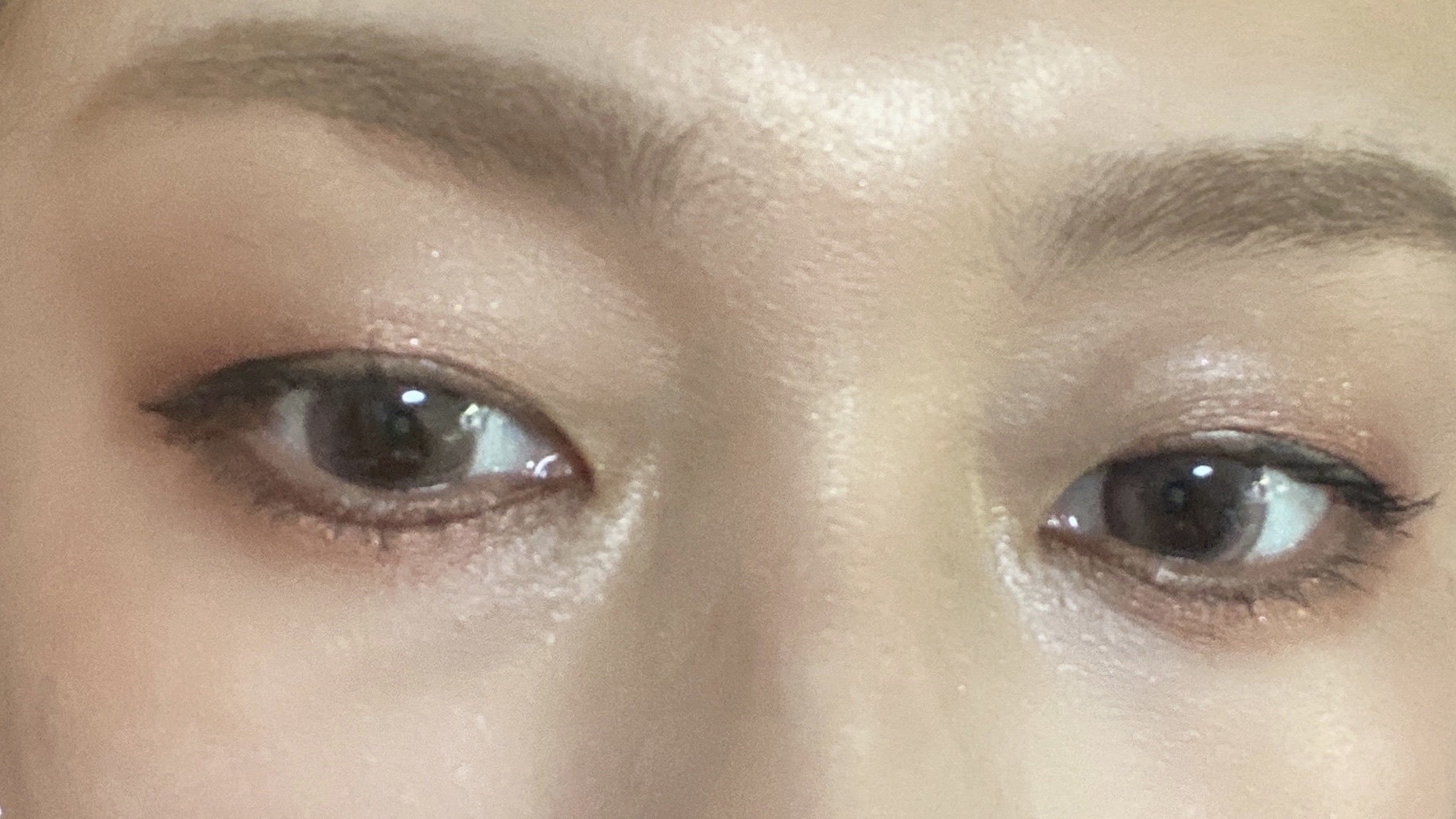 左下の明るいブラウンでアイホール マスカラはDAZZSHOP マルチプルーフラスティングマスカラ WHITY PINK 濃いアイシャドウパレットではないのでブラウン控えめにしたら優しい目元になります