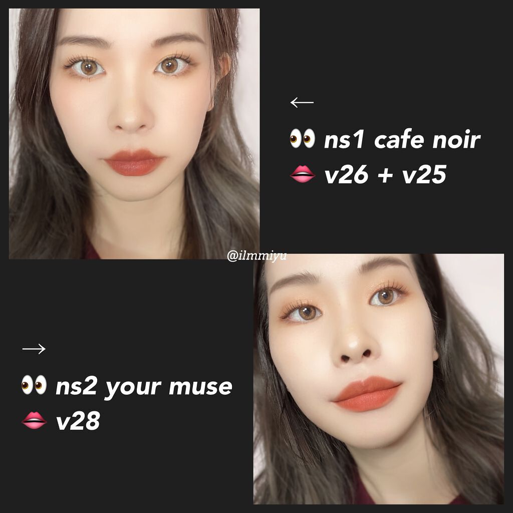 ノワールインザシャドウパレット↳¥1,510・NS1 cafe noir・NS2 your museしっとりサラサラなので使いやすい! 指塗りで簡単にメイクできた✨ ノワールインザボリュームパーママスカラ↳¥1,750アップグレードして再登場!使いやすくてびっくり! パリパリになりすぎず固定されるので すばやくササっと塗る方が🙆♀️