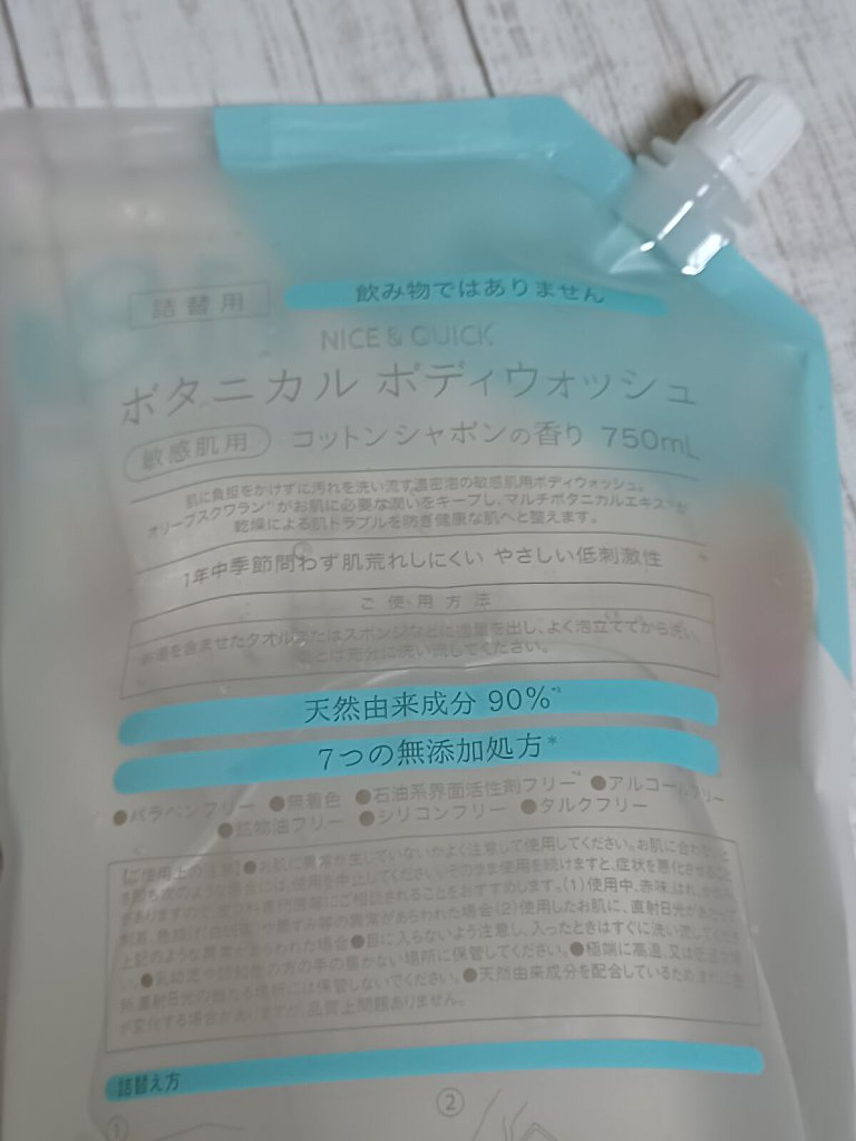 関連する記事NICE & QUICK(ナイスアンドクイック) ボタニカルボディウォッシュ コットンシャボンの香り 大容量詰替 750ml