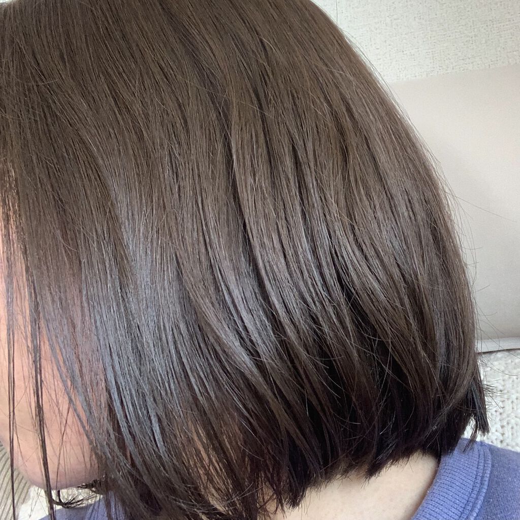 めちゃくちゃ自然な赤みのない黒髪になります!黒髪にしたい人や黒染めしたくないけど暗くしなくてはならない学生さんにおすすめしたいです私の元の髪色が明るかったのもありますが、光に当たるとカーキっぽさを感じる可愛い色味です。写真では一見明るく見えま...