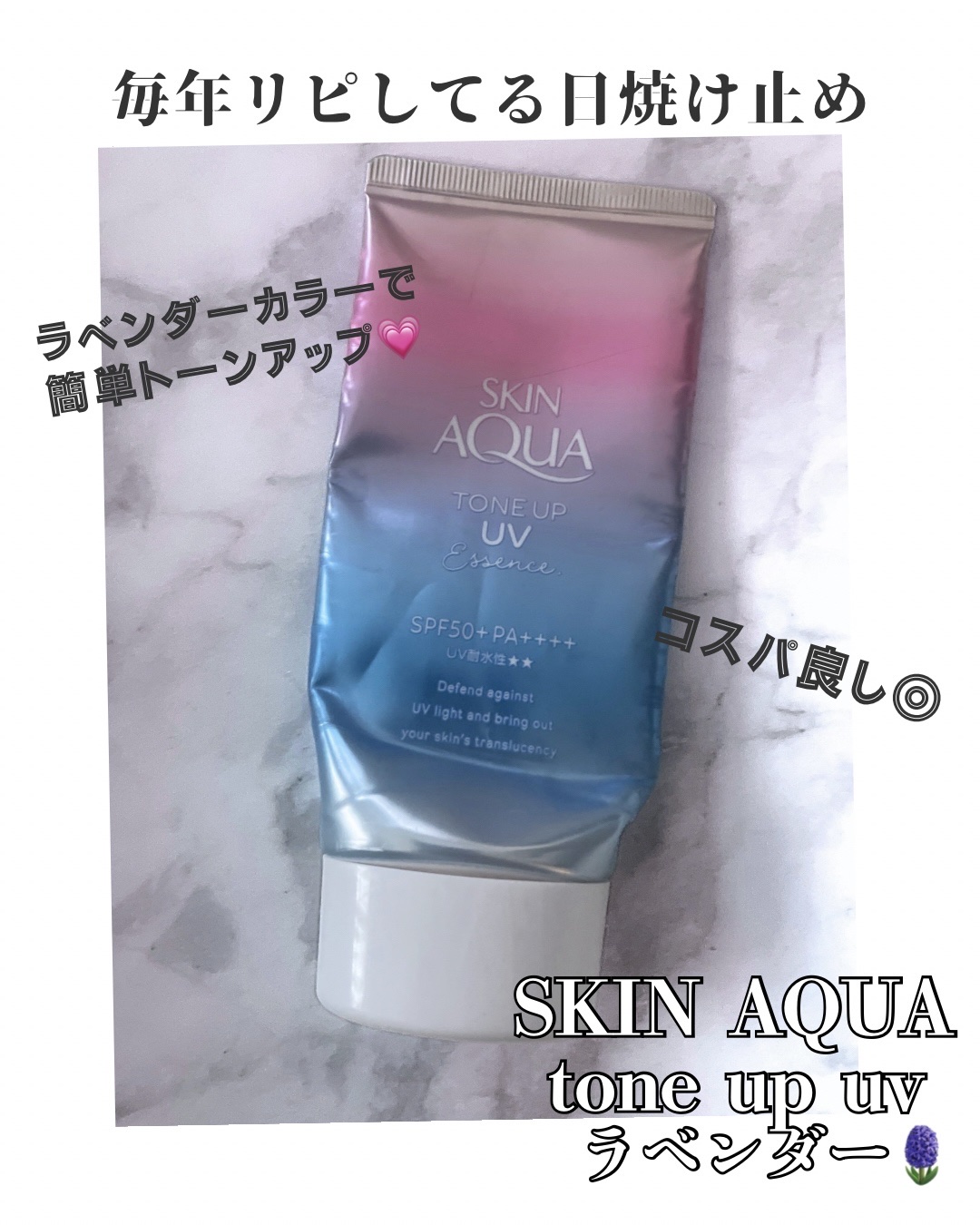 ✼••┈┈••✼••┈┈••✼••┈┈••✼••┈┈••スキンアクアスキンアクアトーンアップUVエッセンスラベンダーだんだんと紫外線が気になりだしてきましたね〜定番ではありますが、化粧下地としても使用できるこちらの日焼け止めを購入。UVカット...