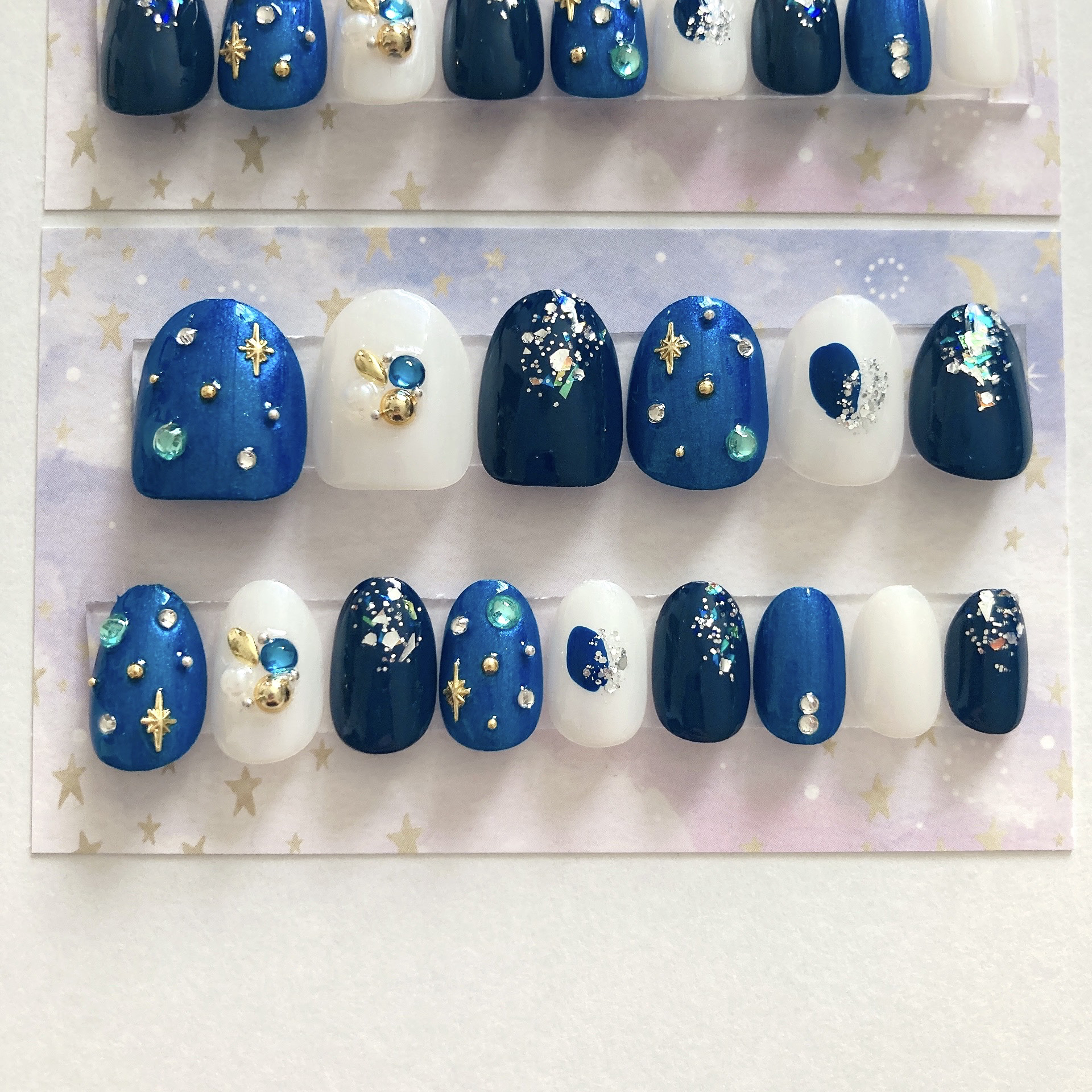 こんにちは!ぴよまるあずきです٩('ω')و最近晴れて星空がキレイなので、キラキラなブルーネイルを作りました🩵濃ゆいブルーはキャンドゥの「TMネイルポリッシュMネイビーブルー」、ラメ入りのブルーは「ネイルホリックBL922」、白は「ちふれネイルエナメル007」です!ストーンなどの飾りはAmazonやセリアなどで購入しました。キャンドゥのネイビー、ちょっと暗すぎるかなと思いましたがネイルホリックのブルーと合わせるといい感じに仕上がりました😊チラチラしたラメがキレイです(*´-`)星空ネイルは無限にデザインがあって楽しいですね(*´꒳`*)✨よろしければどうぞご参考までにm(__)m#ネイルホリック#星空ネイル#セルフネイル