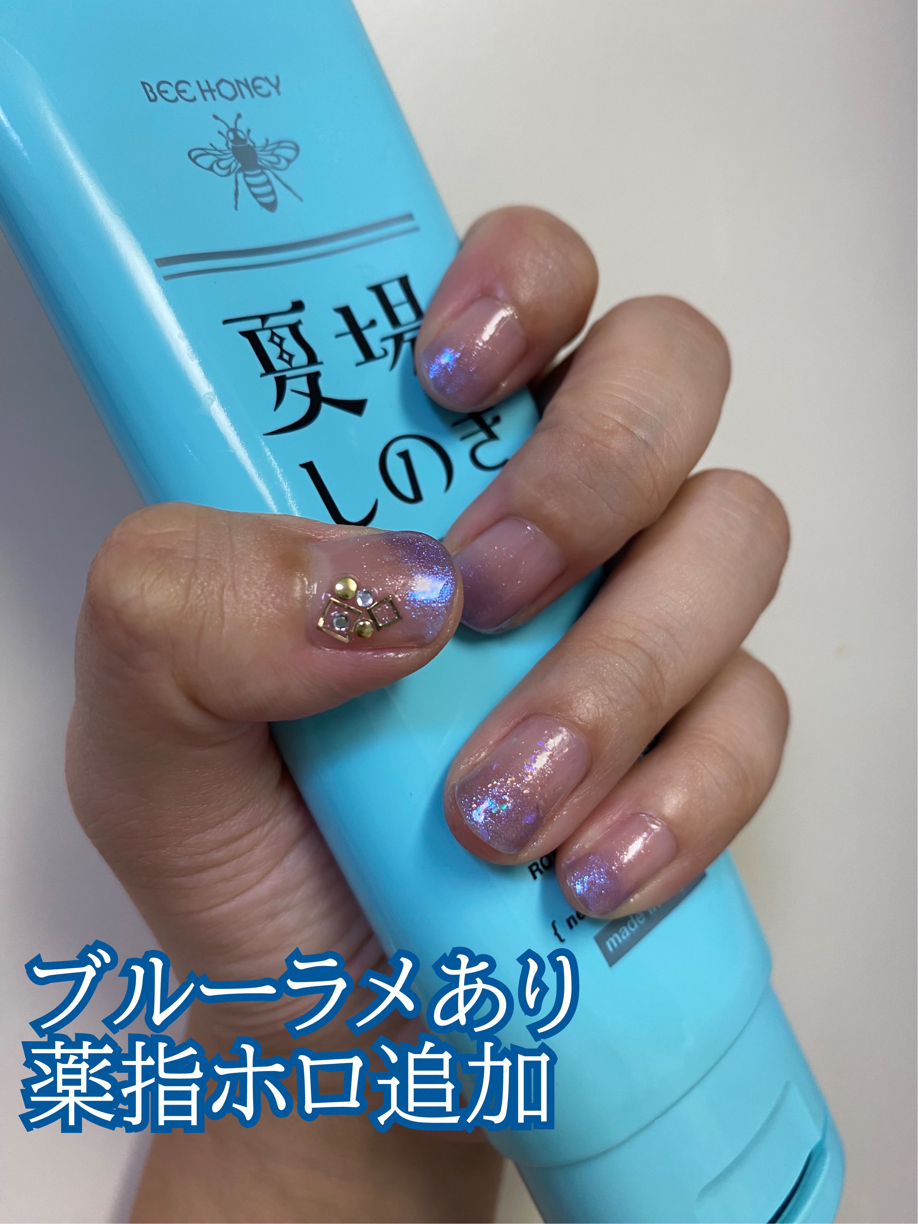 【涼しげ夏ネイル】浴衣にも似合う涼しげネイル💅限定が多いんですが、透け感のあるブルー、パープルラメでおおよそ似たものができます【使った商品】D-UPディーアップファンデーションヌードベージュDAISOキキララネイル ブルーネイルホリックPU152限定ADDICTIONホリデーアディクション“イリディセントユーフォリア”THENAILPOLISHL限定キャンメイクカラフルネイルズN24 トゥインクルドロップデュカートクイックトップコートⅡ※明確に限定のものだけ限定と記載してます【手順】1.ベースコートを塗ります2.ネイルシールを親指に貼ります3.指先1/3目安にキキララネイルを2度塗りします4.爪の半分を目安にPU152をかさねます5.ブルーの上にTHENAILPOLISHLのブルーラメを重ねます6.薬指にだけトゥインクルドロップを全体に重ねます7.全部にトップコートを塗って完成です【ポイント】ブルーは指先だけにすることで血色悪いを回避しますブルーラメはやり過ぎ感もあったしまず限定なので無しでも良いと思いました目立つシルバーのホロをグラデの間にいれても可愛いと思いますトゥインクルドロップが限定でなければラメの代わりにこれもあり…透け感のある色味の近いラメなら代用が効くと思います👌#透明感爆上げネイル#浴衣ネイル#前日準備の特急美容