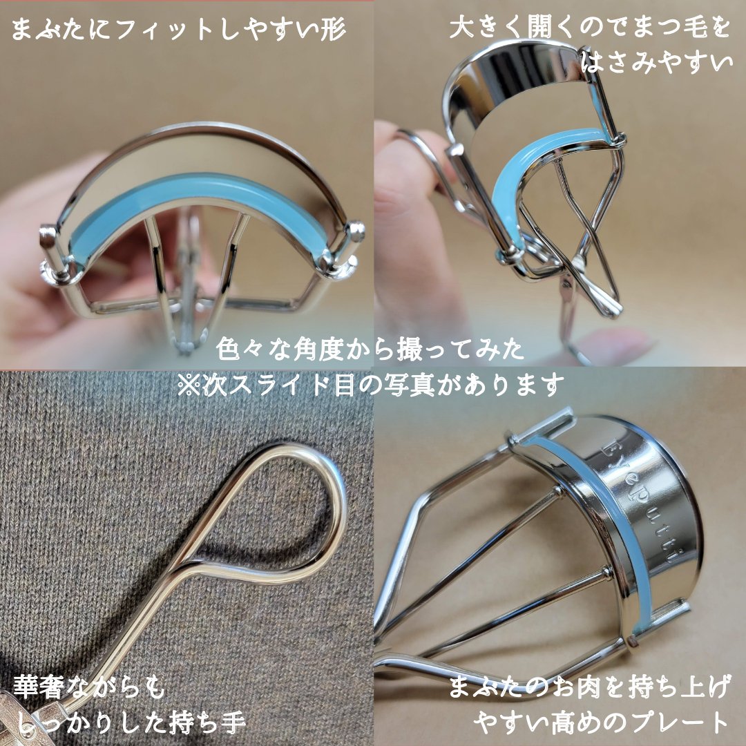ビューラーの挟むか部分がちょっと幅広になっているので 重たいまぶたもぐっと持ち上げて まつ毛を根本から持ち上げてくれる✨ 私も目は二重だけど、まぶたが重ためで まつ毛を上げるのには苦労するので 本当にこれ、出始めの時からずっと愛用中