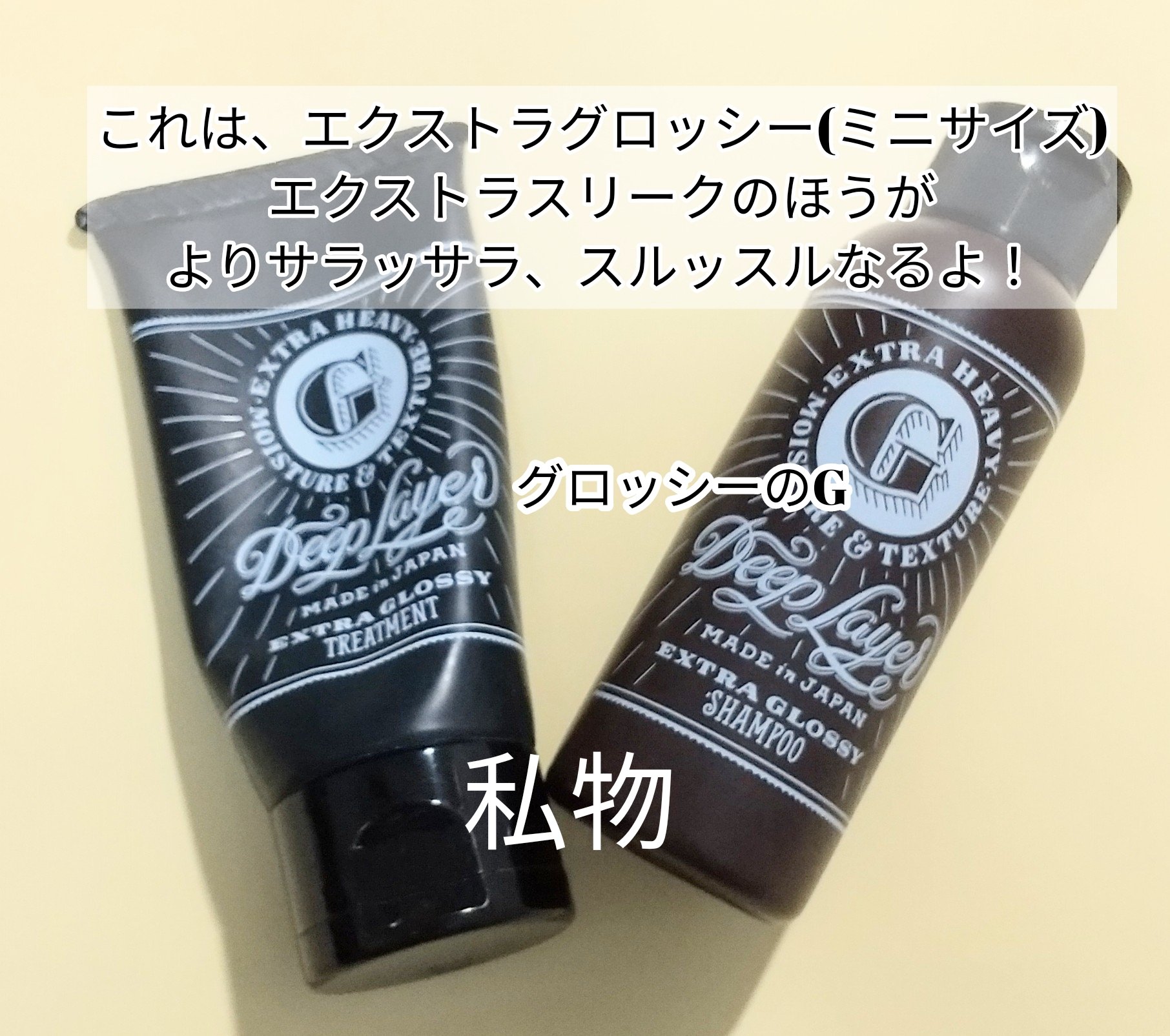 DeepLayerのEXTRAGLOSSYを買ったけど手触りの方が気になるかもとシャンプーExS/トリートメントExSを購入👏まだEXTRAGLOSSYを、使ってるのでストックとして☺️☝️DeepLayerにしてからまとまりが良くなったので...