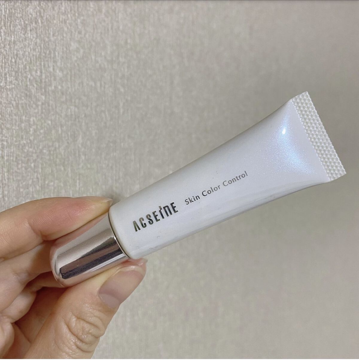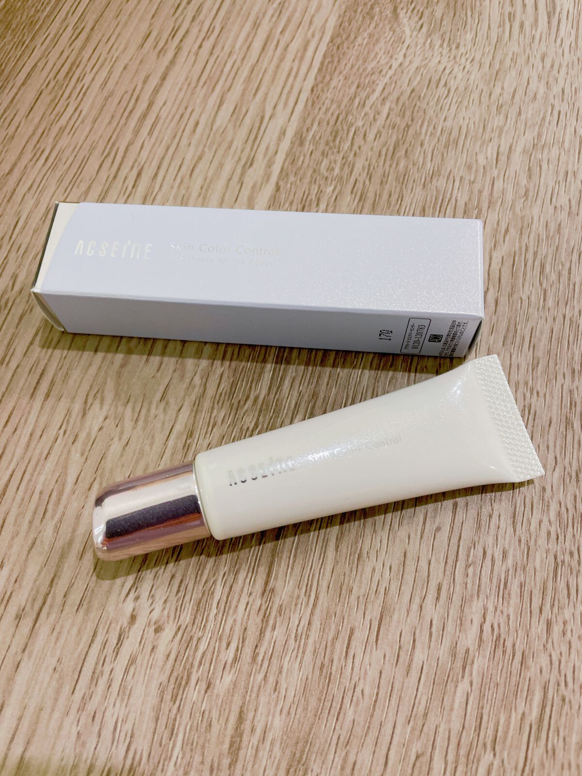 ACSEINEスキンカラーコントロール明るめ明るめだけど、しっかり色付いてる伸ばすと肌に馴染む感じカバー力はまあまあかな?#スキンカラーコントロール#ACSEINE#明るめ#こなれ感メイクテク