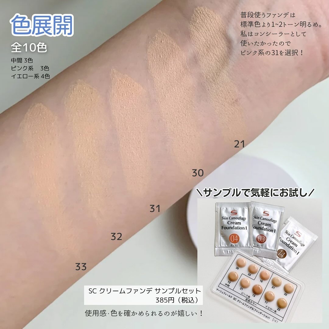 【ハイカバー】〜あざ白斑シミ傷跡全て対応のファンデーション〜。.。:+*゚゜゚*+:。.。:+*゚゜゚*+:。.。.。:+*゚゜゚本日のアイテムブランド名:マーシュフィールド商品名:マーシュフィールド SCクリームファンデS値段:¥2,420(税込)📱@marsh_field。.。:+*゚゜゚*+:。.。:+*゚゜゚*+:。.。.。:+*゚゜゚こんばんは❤︎今日はー!!!!あざ、濃いシミ、傷跡、白斑などをカバーするために開発されたファンデ。クリームファンデで、気になるお悩みをしっかりカバーできる👍テクスチャー重そう…って感じるかもやけど、伸びが良くて少量でも綺麗に伸ばせる!ブラシをあわせて使うとより綺麗な仕上がりに🥺これひとつでコンシーラーとファンデーションのどちらも担ってくれるから、持ち歩きにも便利🌸ウォータープルーフで長時間綺麗な仕上がりをキープしてくれる!!乾燥崩れとかもしにくい!ハイカバーと厚塗り感のない仕上がりを両立してるのがすごい🥺10色展開でカラバリも多いから自分に合ったカラーを選べる!私は31を使ったよ!肌色診断サイトやサンプル(有料)で自分に合った肌色を確認できるよ❣️この他にもボティ用のファンデもあるからチェックしてみてね!チェックしてみてね🪄参考になったらいいね・クリップ・コメント・フォローよろしくお願いします♡#PR#マーシュフィールド#SCクリームファンデS#コンシーラー#ガチ推しベースメイク