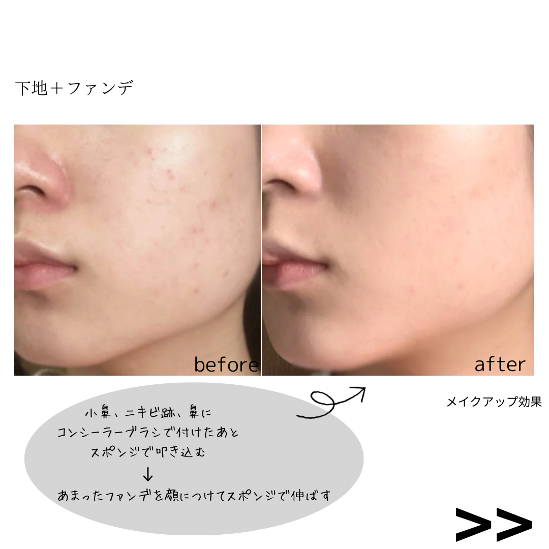 想像以上のカバー力でした👏 シミやアザなどあらゆる悩みをカバー。 でも軽くて自然な仕上がりになってくれます! 私は明るめの30番を使いましたが、 10職展開なので、自分の肌色や、 隠したいトラブルに合わせて選べます! ブラシも塗りのばす、重ねる、フラットにするなど万能。 ほどよくコシもあるし、しっかりフィットしてくれ 使いやすい!毛穴カバーもしっかりできました👌´-