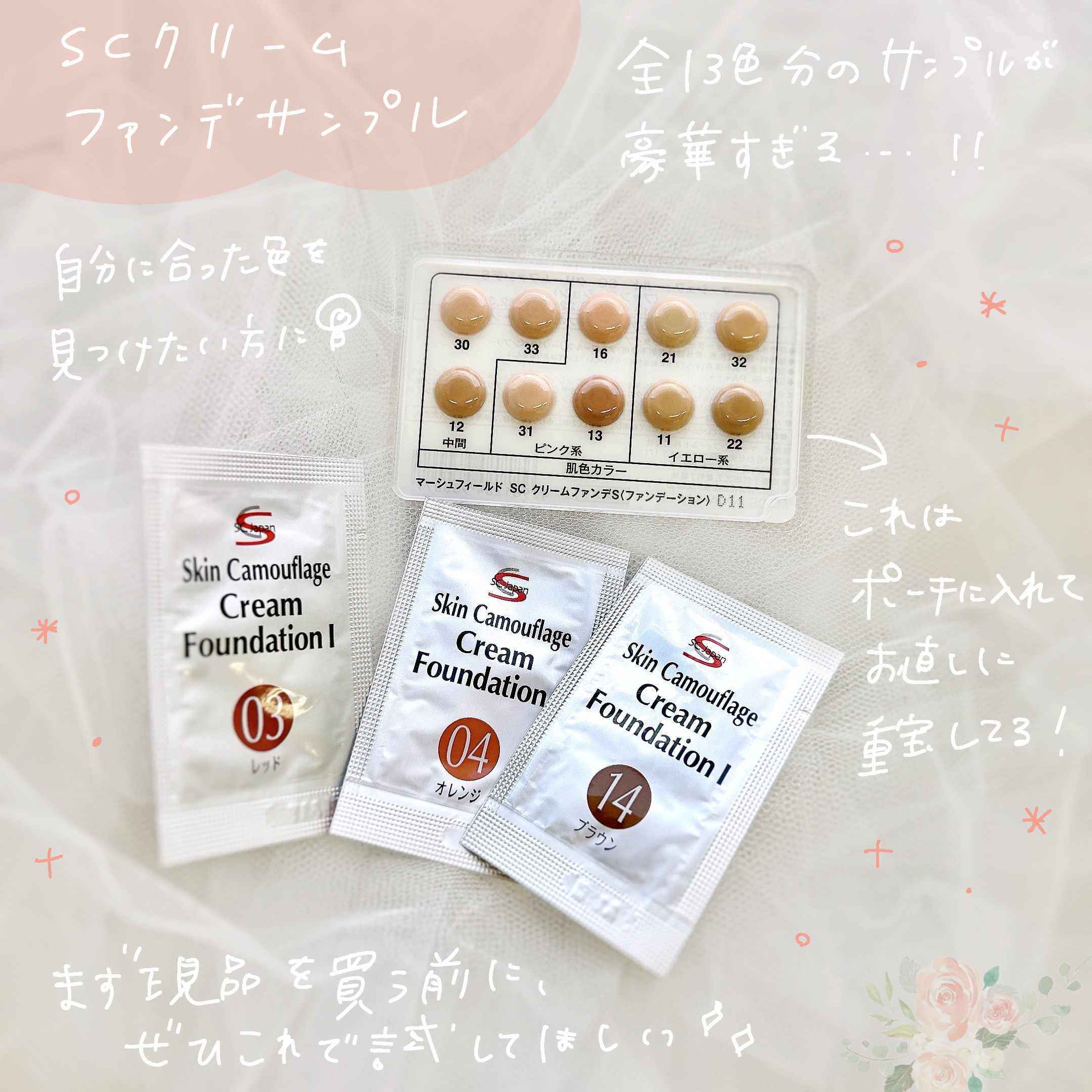 🌹マーシュ・フィールドマーシュフィールドSCクリームファンデS全10色比較✨中間カラー12 30 33ピンク系13 16 31イエロー系11 21 22 32#全色比較#マーシュフィールド#クリームファンデ...