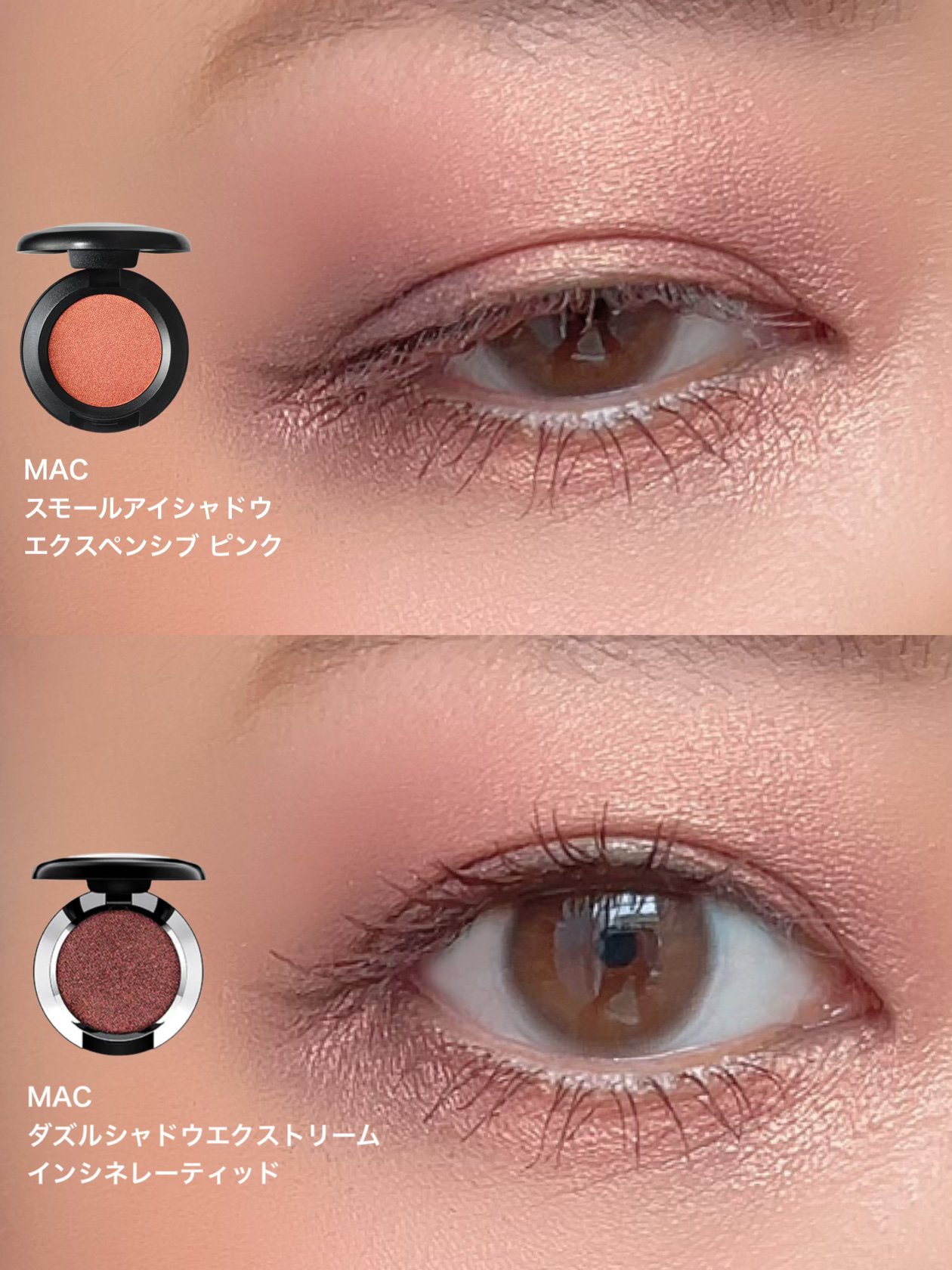 M・A・Cスモールアイシャドウソフトブラウンダズルシャドウエクストリームインシネレーティッドパウダーキスアイシャドウデボーテッドトゥチリの3つでメイク❤️インシネレーティッドをもう少し目立たせたいんだけど全然目立っていないという😱キレイな色な...