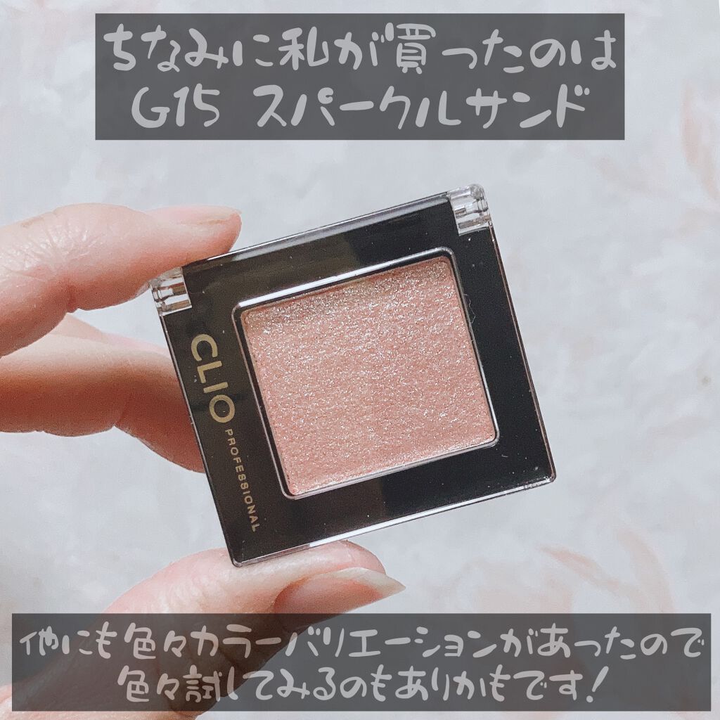 ❄CLIO❄プロシングルシャドウG15スパークルサンド贅沢ラメでプロ級の濡れツヤな目元へ👇🏻使ってみて指原莉乃さんが別の色(G10)を使ってたという情報があり、どんなのかな〜と思ってたけどとてもいい!キラッキラで可愛すぎて私もキラキラしたいと...