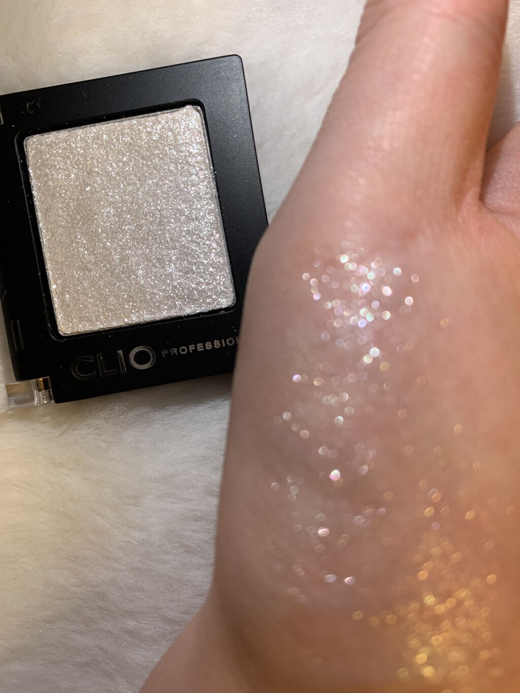 CLIOプロシングルシャドウ新色!G11マーメイド🧜♀️Qoo10で700円で購入しました🧸💕G10を#私のベストコスメ2020に入れるくらい大好きなので他のカラーも欲しくて買っちゃいました💕指には白シャドウ+ラメって感じでつきますが、実際腕に出してみると色はほんのりついてラメラメラメ‼︎‼︎って感じです☺️ピンク、シルバー系の多色ラメが入ってるように見えました!