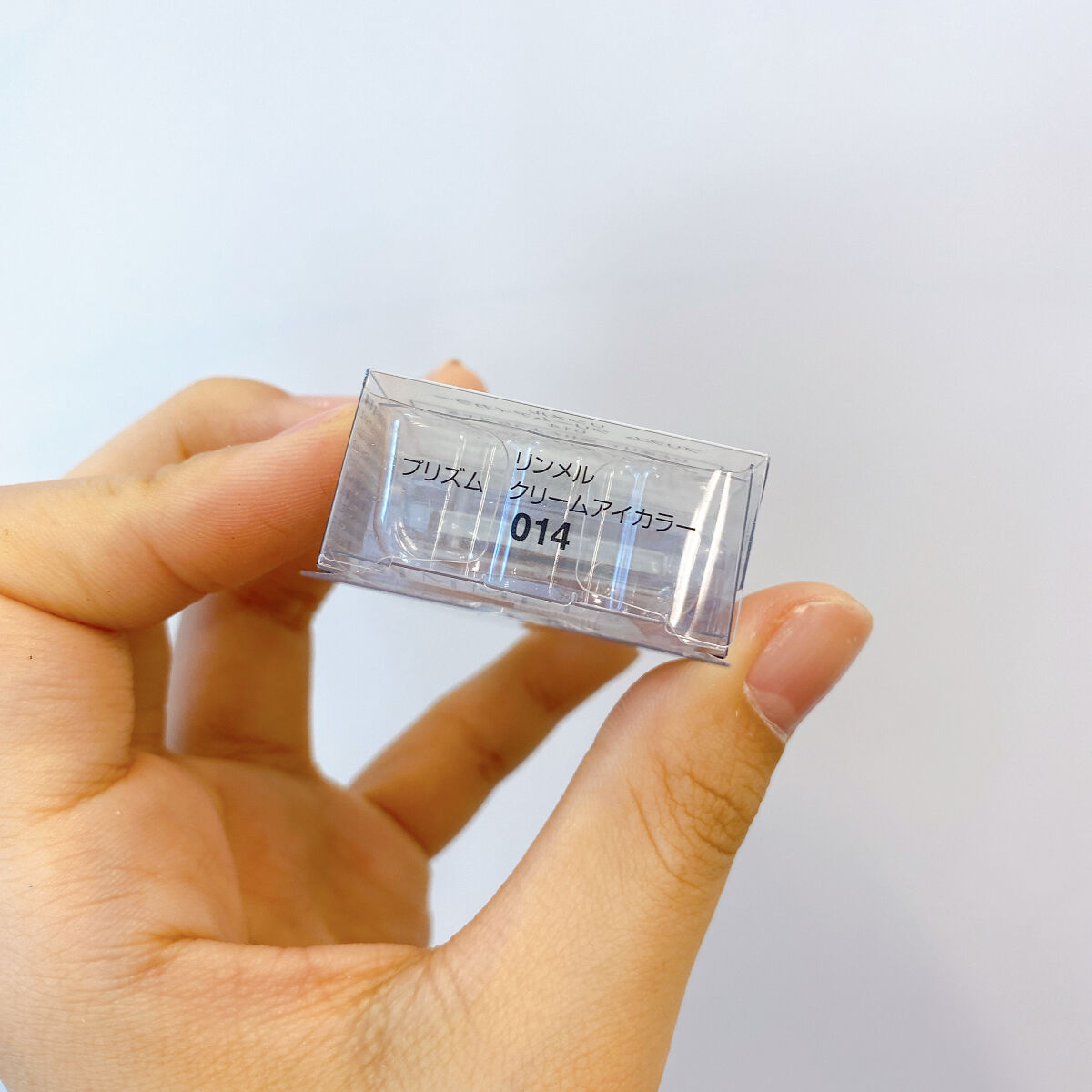 リンメルプリズムクリームアイカラー014ピーチソーダのようなコーラルピンク015カシスソーダのようなライラックパープル014表面を撫でると溶ける感触で面白いです。腕にスウォッチすると綺麗なコーラルピンクに発色しますが私のまぶたではあまり発色し...