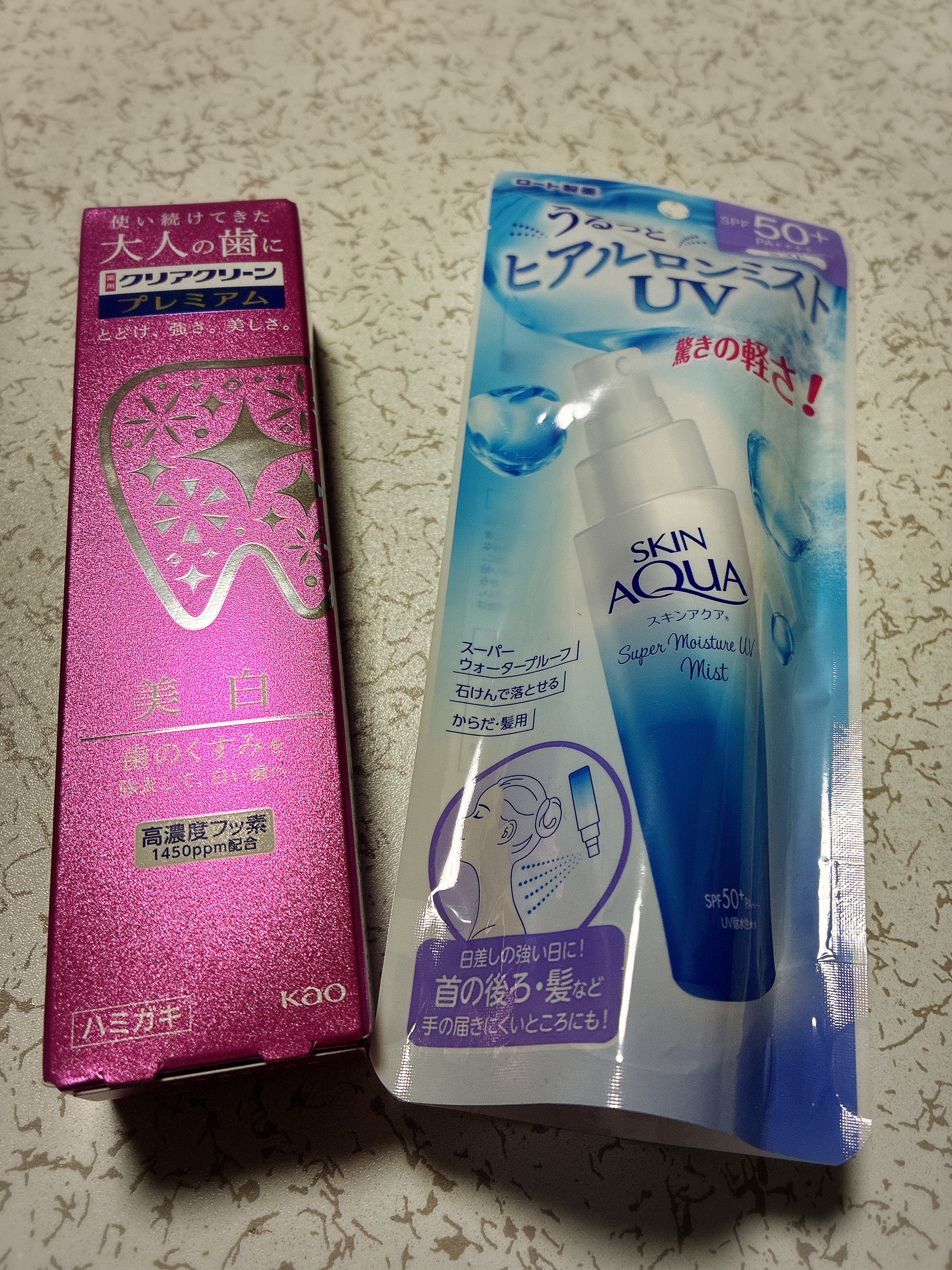 またまたドン・キホーテ購入品です!クリアクリーンの歯磨き粉は何回もリピ買いしている商品で429円でしたので大変お得に購入できました🦷🪥✨スキンアクアの日焼け止めはテスターを使用してみて、着け心地がすごく軽かったので購入してみまひた!日焼け止めのベタベタ感が苦手なのでこれは使うのが楽しみです😊
