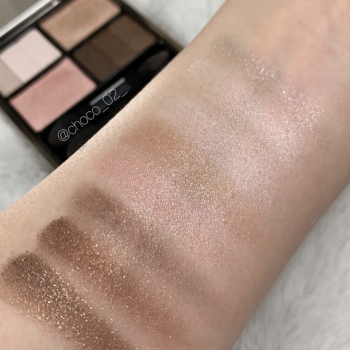 最近このアイシャドウパレットに突然ハマっています。 ピンクベージュな瞼にしたいなと思いこちら久しぶりにリベンジ。 発色がガッツリ出ないのでふんわりブラシでのせていくと何とも良い艶感がでて 瞼や目周りがツヤツヤお上品。 ピンク味がほんのりなので甘くならず使いやすい。これ名品じゃないですか