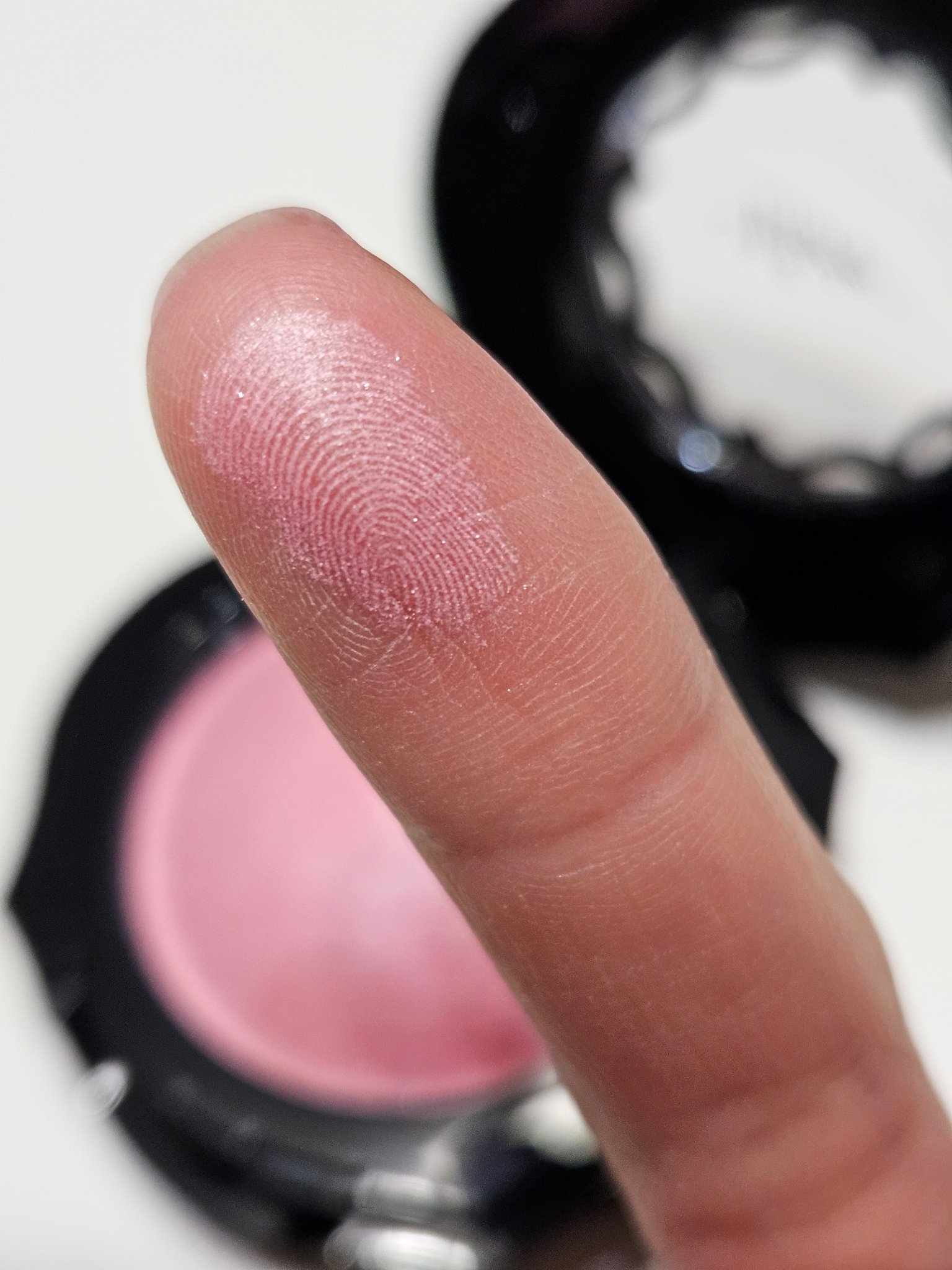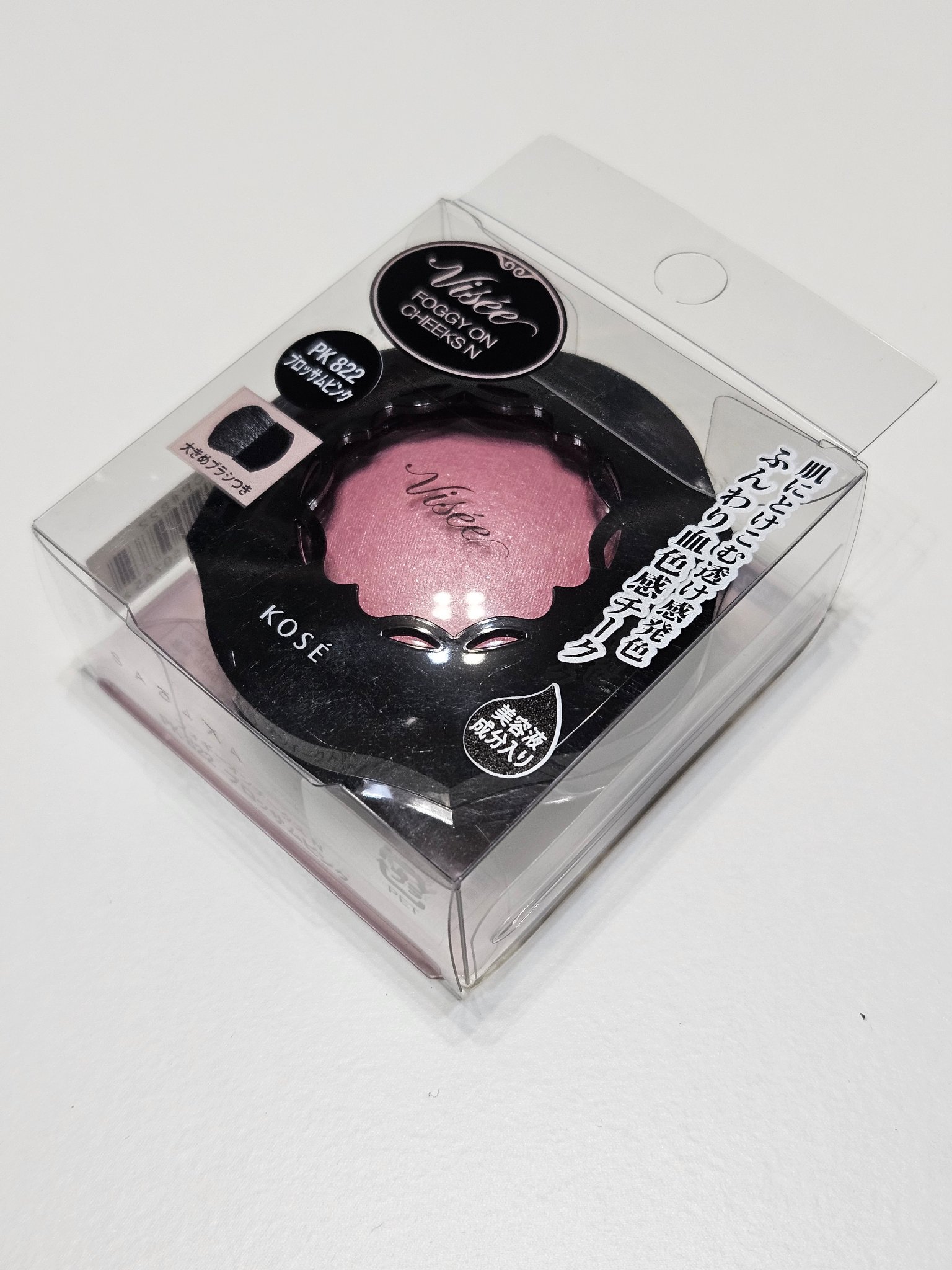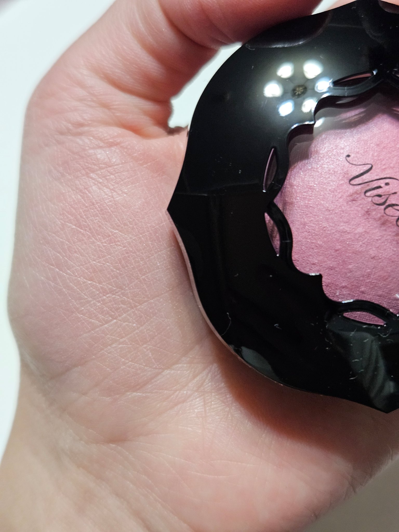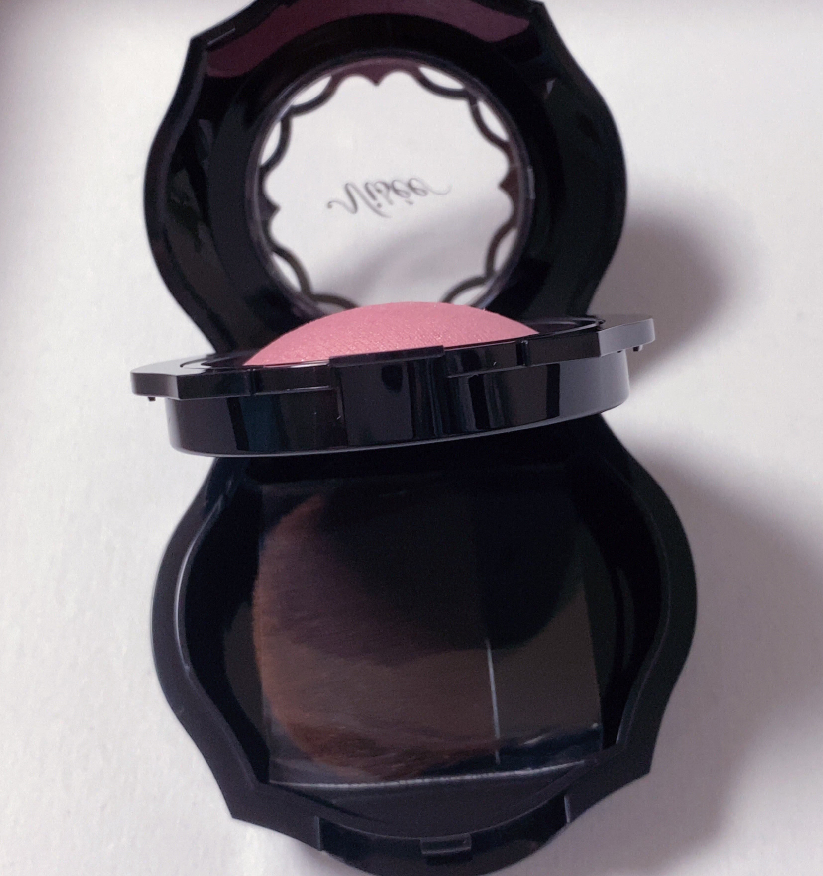 ViséeフォギーオンチークスNPK822ブロッサムピンク¥1,650甘いのに上品 透明感ベビーピンクでお人形ほっぺに。○色味・甘い青みピンク。・キャンメイクのロリポップピンクより白みは控えめ。○質感・パール入りで頬に自然なツヤ感が出る。派手にならず、上品で毛穴も目立たない。・プラスが固めでドバッとつかない。おてもやん回避できる。・しっとりしていて粉飛びなし◎。○仕上がり・透明感のある発色でナチュラルに盛れる。・アイシャドウとしても使える。チークブラシでまぶたにのせるとふんわりピンクになり、くすみ飛ばしにも◎。○使い勝手・チークの下にブラシが内蔵されている。薄型で柔らかくて使いやすい。・チークはドーム型なので長持ちしそう。○おすすめの人・甘めだけど上品なベビーピンクチークが好き・ナチュラルに透明感のある仕上がりが好き○おすすめできない人・一度でしっかり発色するチークが好き・完全マット仕上げがいい個人的には、パケの黒×中身の青みピンクの組み合わせがめちゃくちゃツボです。毎日使いやすくて容量もたっぷりなのでこれからどんどん使っていこうと思います!