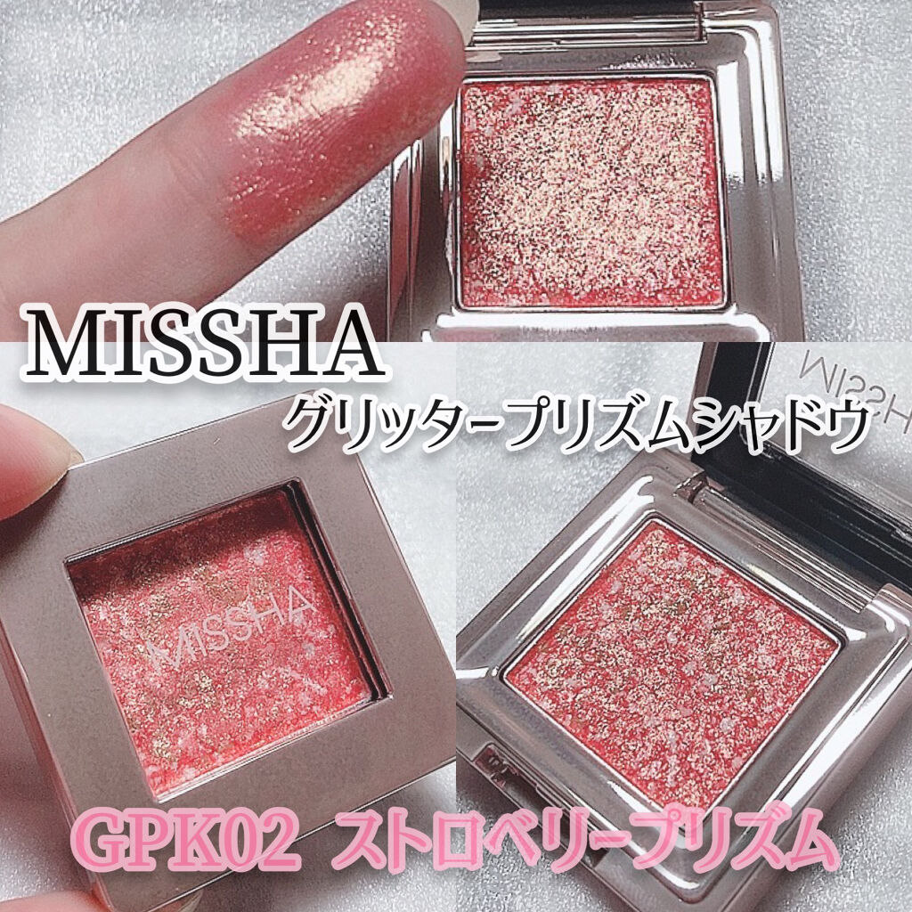 ▶MISSHAグリッタープリズムシャドウGPK01ストロベリープリズム▶値段 1320円(税込)▶グリッター配合量約20%UP・宝石パウダー配合▶ザラザラな見た目に反して滑らかな質感。▶とにかくキラキラ、ピンクで可愛いです。▶私は指で塗ります...