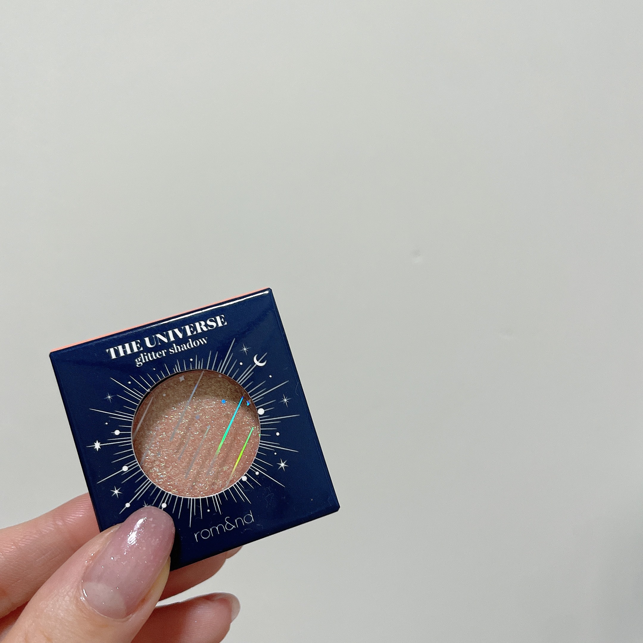 rom&ndザユニバースグリッターシャドウ#03コーラルサートン1,000円宇宙をテーマにしたカラーの単色アイシャドウ。最近色んなところで販売されていますよね!商品名の通り、ラメが星を散らしたような輝きです🥺✨そしてこれだけキラキラなのにぴた...