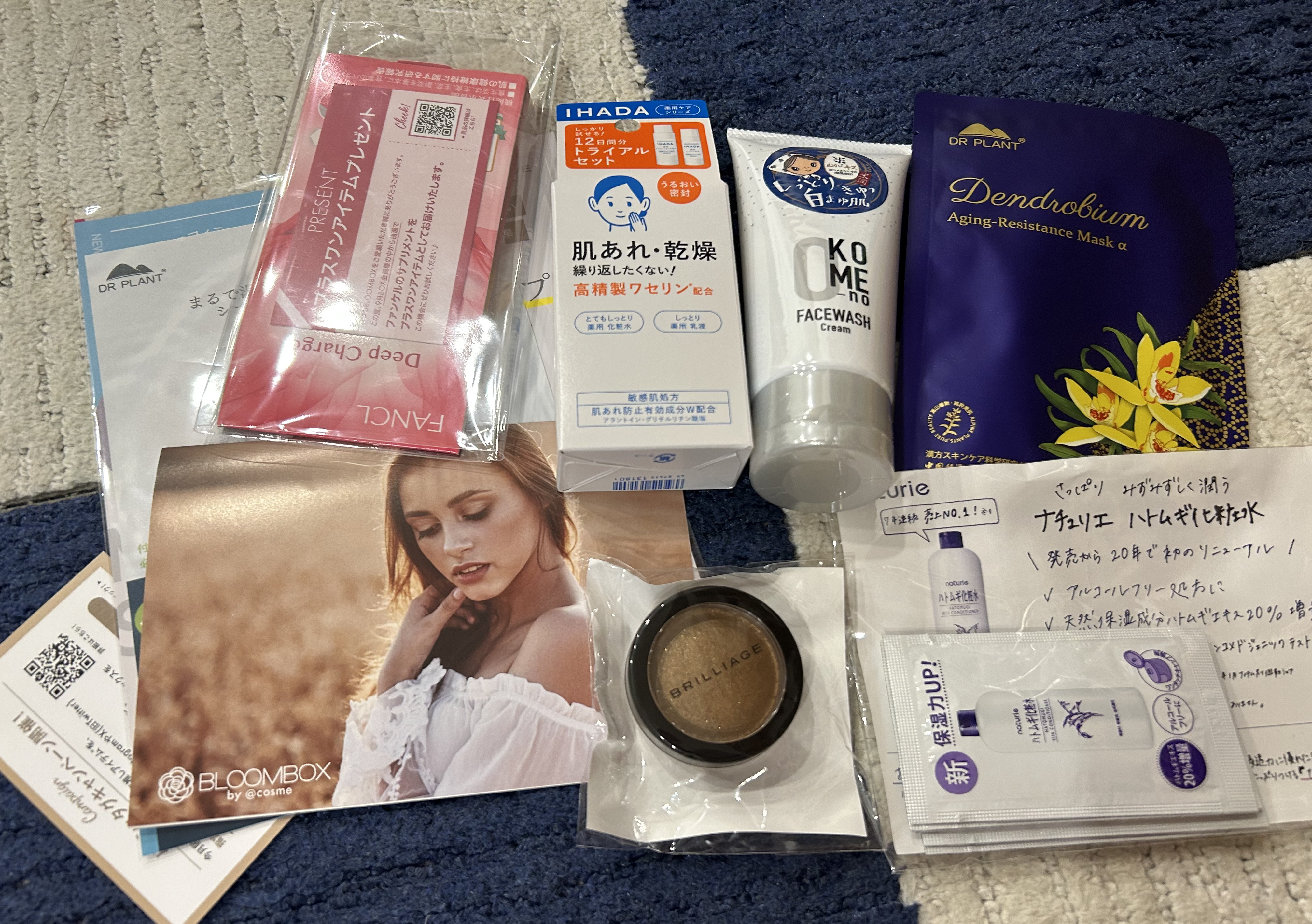 BLOOMBOX2023.9月今回は、ブリリアージュクチュールシャドーフォーアイズがいちばんのお気に入り!プレゼントで入ってたコラーゲンゼリーも美味しいです。