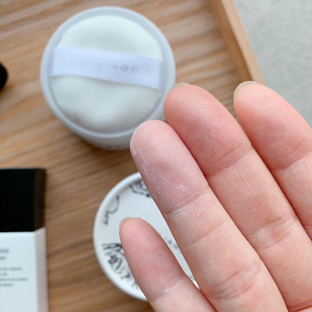 やや硬めのもったりとしたテクスチャーでものすごく伸びが良くて付け心地が軽いです。 肌に一枚薄い膜を覆ったかのように肌凹凸、毛穴カバー、くすみ、色ムラをカバーし、顔全体の印象を明るく、透明感を与えてくれます。 ややピンク味が強いです。 肌の外側はさらさらなのに、乾燥も感じませんでした。 自然なトーンアップで肌のアラをなかったことにしてくれるので、在宅勤務やオンライン会議でもこれひとつでOK。 フェイスパウダーって同じ種類だとなかなか違う種類があることって少ないと思うのですが、これは演出したい肌=なりたい女性像に応じて使い分けできるトランスペアレントルーセント・トランスペアレントグロウの2種展開になっています。 粒子が細かく、うまく毛穴をぼかしてくれて自然な仕上がりです。 今愛用している有名なデコパスのフェイスパウダーと変わらない仕上がり。 フェイスパウダーつけるとどうしても乾燥してしまうよ~と言う人はこれは潤いも奪わないのでとってもおすすめです。