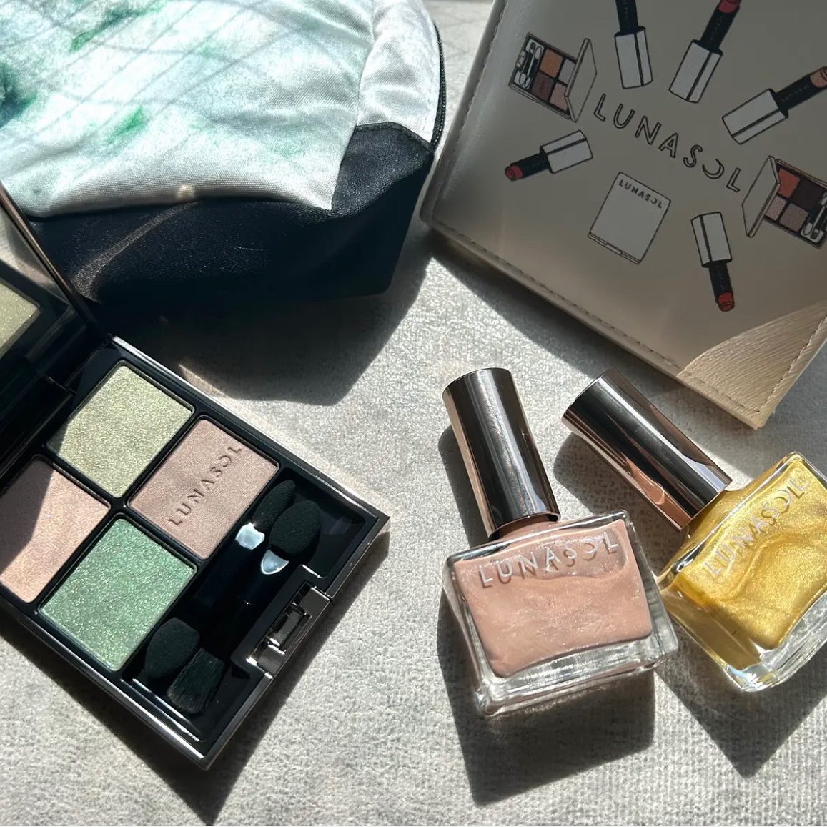 LUNASOL(ルナソル)ネイルポリッシュ💅01GoldCoinEX01ShellPetal(限定)EX04TurquoiseTile(限定)EX05BermudaBiue(限定)EX06IvyGreen(限定)2020.05.15発売∴ ∵ ∴ ∵ ∴ ∵ ∴ ∵ ∴ ∵ ∴ ひと塗りで、見たままの鮮やかな発色を叶えるネイルポリッシュ。ムラなく均一な塗り心地で、ツヤが弧を描くような美しい仕上がり。速乾性に優れ、いつも塗りたてのように綺麗な指先へ。(公式より)全10色 うち6色限定色で発売されました💡ボトルがリニューアルされて、横長さんになっています。速乾性で、ブラシも、爪にフィットしやすい✨平筆タイプなので、塗り安いです。ムラになりにくく、発色がとても良い✨1度塗りでも十分綺麗に塗れちゃいます。あと、これは私の好みなのですが、ブラシの柄の部分(金色のところ)が長めなので、持ちやすく使いやすいです。CHANELやDiorのとかみたいに、キャップを外して、中の持ち手の部分が短く小さいものって、私は使い難いです🙈綺麗な艶が出るので、ツルンとして爪に。と言っても、艶の具合って、トップコート次第ですが・・・💦今回私が選んだカラーは、1年を通して使えそうなカラーにしてみました。この時期に発売されるネイルポリッシュのカラーって、夏感満載なものが多いなか、秋冬でも使えそうな重ためダークカラーが揃っていたので、選んでみました😄【EX01ShellPetal】明るすぎないトーンのメタリックゴールドチープなゴールドじゃない発色なので、指先に重厚感が感じられる。ポイント使いに良さそう。【EX01ShellPetal】とってもとっても細かいパールがたっぷり入って、ツヤキラッと輝く。【EX04TurquoiseTile】【EX05BermudaBiue】【EX06IvyGreen】どれも、深みカラー。重ためのカラーなので、夏には暑っ苦しく感じちゃうカラーでも、モードな手元にしてくれます。あえて、夏にかっこよく使いたいカラー。EX02Opalも欲しかった😭電話で予約した時には気にならなかったのに、実際にみたら、とっても綺麗なカラーだった❗️もちろん・・・Soldoutでした・・・😭😭😭#ルナソル#LUNASOL#サマーコレクション#ネイル#限定
