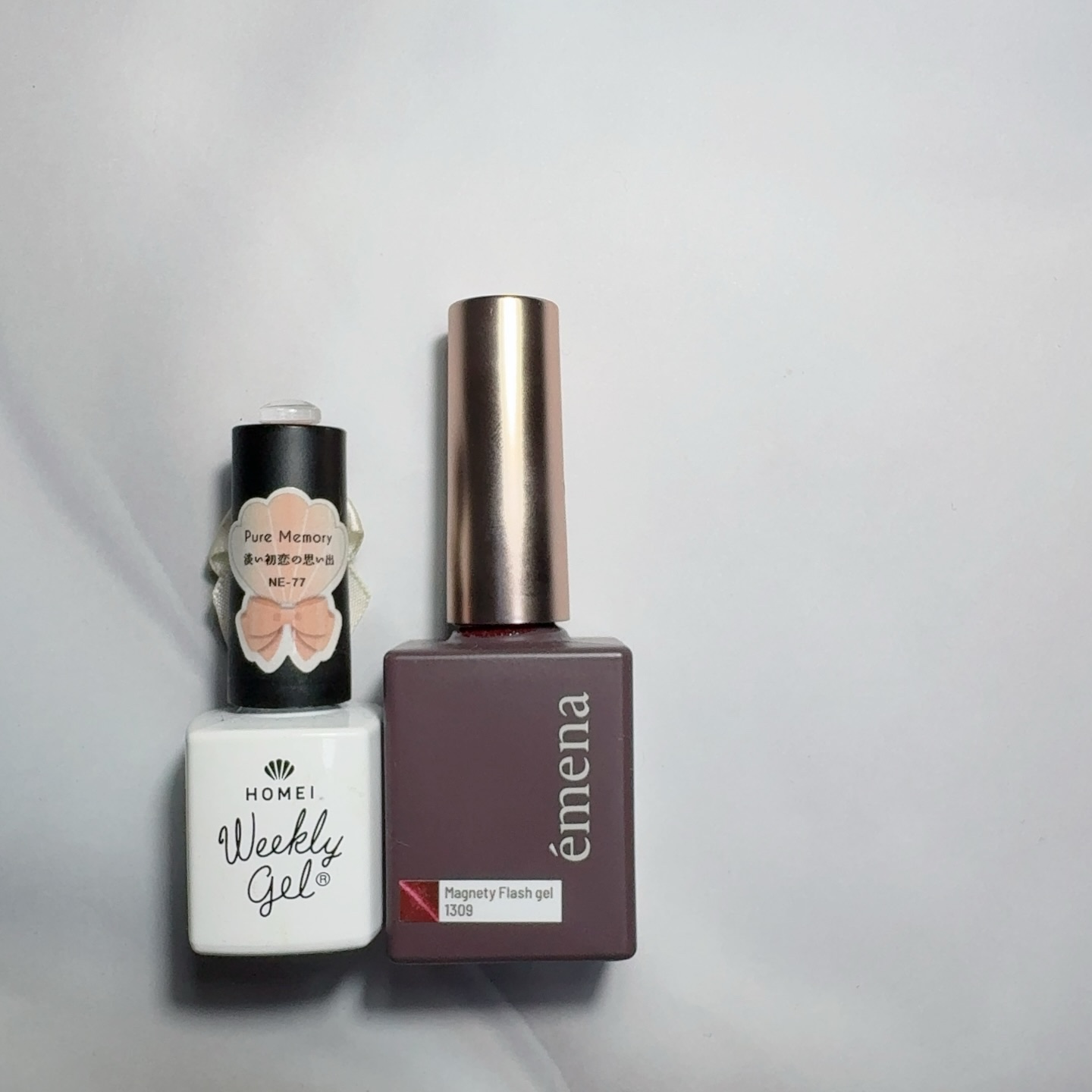 こんにちは!くちべにこです。炭水化物が大好きです。HOMEIウィークリージェルNE-77PureMemory限りなく素爪に近くて清純派気取れるネイル見つけちゃいました…ラメやパールが一切入っていないシアー系のピンクベージュカラーで、自分の爪の血色をめちゃくちゃ良く見せてくれます…ちなみに、私はこちらのウィークリージェルを専用のロングコートベースと使っていますが非常に使い勝手がいいです。テクニック要らずでUVライトさえあればツヤッツヤのセルフネイルが完成しますし、アセトンを染み込ませたコットン+アルミホイル巻き巻きで20分ほど放置するだけで簡単に落とせます。ちなみに、ベースジェルを使った状態だと3日目くらいで端っこから少しずつ浮きが出てきます。あまり分厚く塗ったやつだとまるごとペリッと剥がれたりもします。ただ、本当に手軽にジェルネイルが楽しめる上に、1色1000円前後とお手頃な価格なのでついついいろんな色を試したくなっちゃいますよ☺️私がゴリ押ししているこちらのカラーはオンラインストア限定なので店頭で試すことは難しいですが、ナチュラル清楚系の爪を目指す方には絶対に後悔させないピュアカラーなので、ぜひ試していただけると嬉しいです。くちべにこでした!#綺麗は指先から