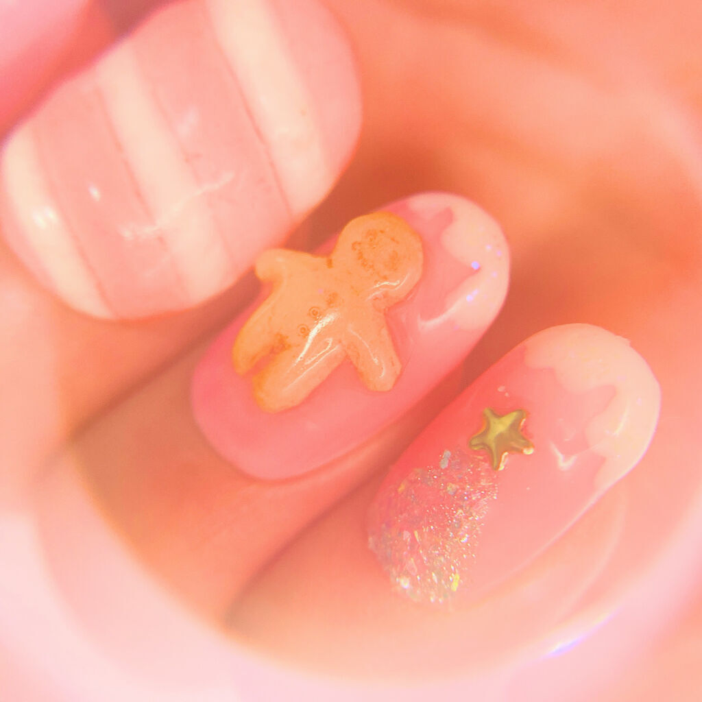 クリスマスといえば赤だけど…やっぱり大好きなピンクでクリスマスネイル💅💕《使ったもの☟》✔︎HOMEIウィークリージェル・WG-0Clear・WG-2Framboise✔︎セリアSHジェルネイル・ホワイト・ココアブラウンネイルチップ用両面粘着テープ✔︎DAISO・ネイルチップ・ミニネイルアートブラシ・ネイルシール・デコレーションネイルパーツ(クリスタライズホログラム)✔︎ネイルホリックネイルホリックフューチャーメタルSV045✔︎樹脂粘土(手芸屋さんで購入。100均にもあります。)ーーーーーーーーーーーーーーーーーーーークリスマスといえば、赤、緑、白、ゴールド…というイメージですが今回は大好きなピンクでクリスマスネイルチップを作ってみました!まずはネイルチップを自分の爪のサイズにヤスリで削ります。長さも整えて。できたら次はパーツ作り!立体的にしたかったので、樹脂粘土を使ってパーツを作ってみました。白い樹脂粘土にアクリル絵の具を混ぜて色を作ってます。作ったパーツはサンタ帽、キャンディー、雪だるま、ジンジャークッキー、キャンディーのようなストライプ。爪楊枝、綿棒、デザインカッターなどを使う細かい作業…!乾く前にチップに乗せて、チップにフィットする様に少し反らせます。乾いたらパーツの完成!ーーーーーーーーーーーーーーーーーーーーついにチップを塗っていきます!!①まずはホワイトのジェルを1度塗りして硬化。②ピンクのジェルを塗って硬化。ピンクは2度塗り。③クリアカラーのジェルを塗って、パーツを乗せて硬化させ、固定していきます。④ネイルシールはそのまま貼るだけ!⑤トナカイは赤いストーンを貼った後、ココアブラウンのジェルをミニネイルアートブラシを使って角を書いて硬化。⑥ツリーはネイルホリックのシルバーラメで三角を書き、上に星形のネイルシールを貼って乾燥させます。⑦パーツの隙間を埋めるように、クリアカラーのジェルを塗り硬化します。(パーツの上にも塗ることでツヤツヤに)⑦ホワイトのジェルで爪先に積もった雪を表現。なみなみに、少し厚めに塗って硬化。⑧雪のキラキラを表現するために、⑦のところにクリアカラーのジェルを薄く塗り、綿棒でクリスタライズホログラムの細かいラメをトントンと乗せていきます。そして硬化。⑨仕上げにクリアカラーのジェルを全体に塗って完成!お好みで1度塗りでも2度塗りでも◎。ーーーーーーーーーーーーーーーーーーーーネイルチップシールはセリアのネイルチップ用両面粘着テープ(小さい爪用)を使用。かなり粘着力は強いです!爪の油分、埃を取り除いてからピンセット等で貼り付けるとさらに取れにくく!!剥がすのも簡単!と書いてありますが、剥がす時に爪の表面まで剥がれてしまったりするのであらかじめ爪にはトップコートなどを塗っておくことをおすすめします✨ーーーーーーーーーーーーーーーーーーーー今の100均のネイルシールは本当に可愛くて貼るだけで可愛いネイルができちゃいますね🥺立体的なネイルがしたいときは粘土ジェルなどもありますが私は手軽に購入できる樹脂粘土を使用しています。100均でも入手できるので、ぜひお試しあれ💓#ネイル#セルフネイル#ネイルチップ#ジェルネイル#クリスマスネイル#セルフジェルネイル#100均