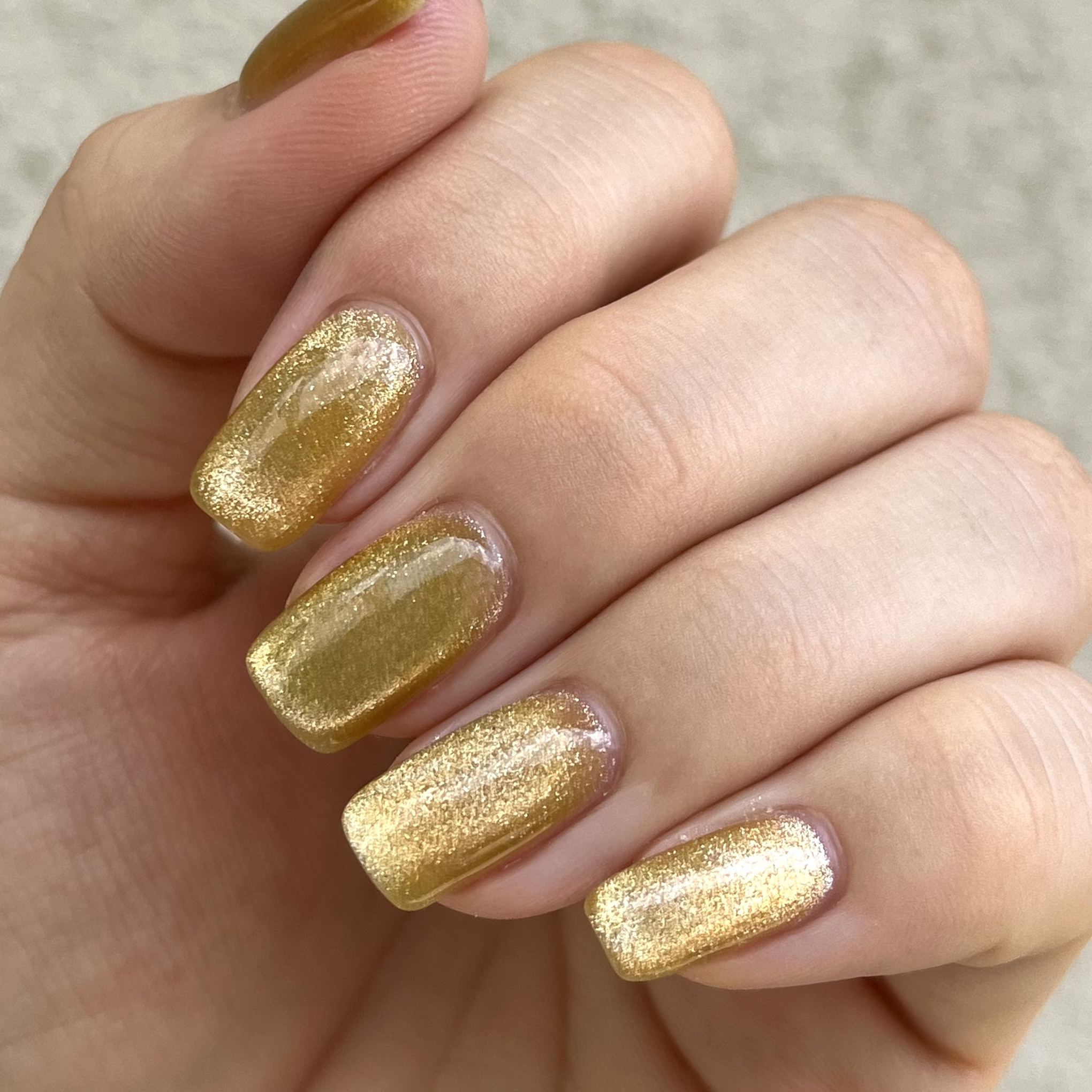 プチプラで可愛いマグネットネイル💛沢山撮りました🤣使用カラーネイル工房 fruitmagnet01onion彩度を落とした黄色のような…シャンパンゴールドのようなマグネットセール時を狙えば半額の250円で買えます✨HOMEIウィークリージェルNE-23 TropicalMangoクリアオレンジ色。廃盤かも?ベースとトップはアーキートーキョーフルーツマグネット1度塗り+ウィークリージェルをうっすら1度塗りしています💅(1枚目だけマグネットネイルのみ。あまり色味変わらないかな👀)マグネットは撮影が難しい🫨#ラメグリッター祭り