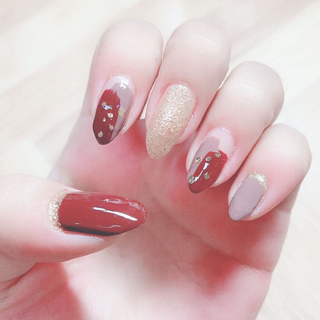 画像が多くてすみません💦HOMEIのスパンコールとインテグレートのクリアのグラデがあまりに可愛くて😍←自己満(笑)画像載せたいだけ載せました😂昨日少しだけ使った、HOMEIの『無敵』ゴールドのスパンコールネイルです✨グラデーションにしてますが、置くように塗り広げて、爪先はびっちりスパンコール付けてます❤うまく乗らない時は、刷毛から、爪楊枝でサッとスパンコールだけ取り、爪の好きな部分に貼り付けるように置くと、うまくいきます✨(私も時間があまりなかったので、うまくは置けてません(´>∀<`)ゝ)インテグレートネールカラー92のクリアなワインカラーは、グラデーションにすると、本当に可愛くて、葡萄のような🍇、りんごのような、、🍎とにかく可愛いです💕このキラキラと、ちゅるんとしたグラデーションが、最強の組み合わせだなぁ✨って勝手に思っちゃったよw自己満ですが、そんな感じでとても気に入ったネイルでした💕記録として残してますが、アレンジや、ネイルカラーの参考になると、これまた嬉しいです٩(๑>ᴗ<๑)۶いつも見て頂いてありがとうございます❤#ゆき姉ネイル#HOMEIネイルポリッシュ#HM22B無敵#インテグレートグレイシィネールカラー92#グラデーションネイル#ラメグラデーションネイル#リップスターズ#LIPSagm#agm