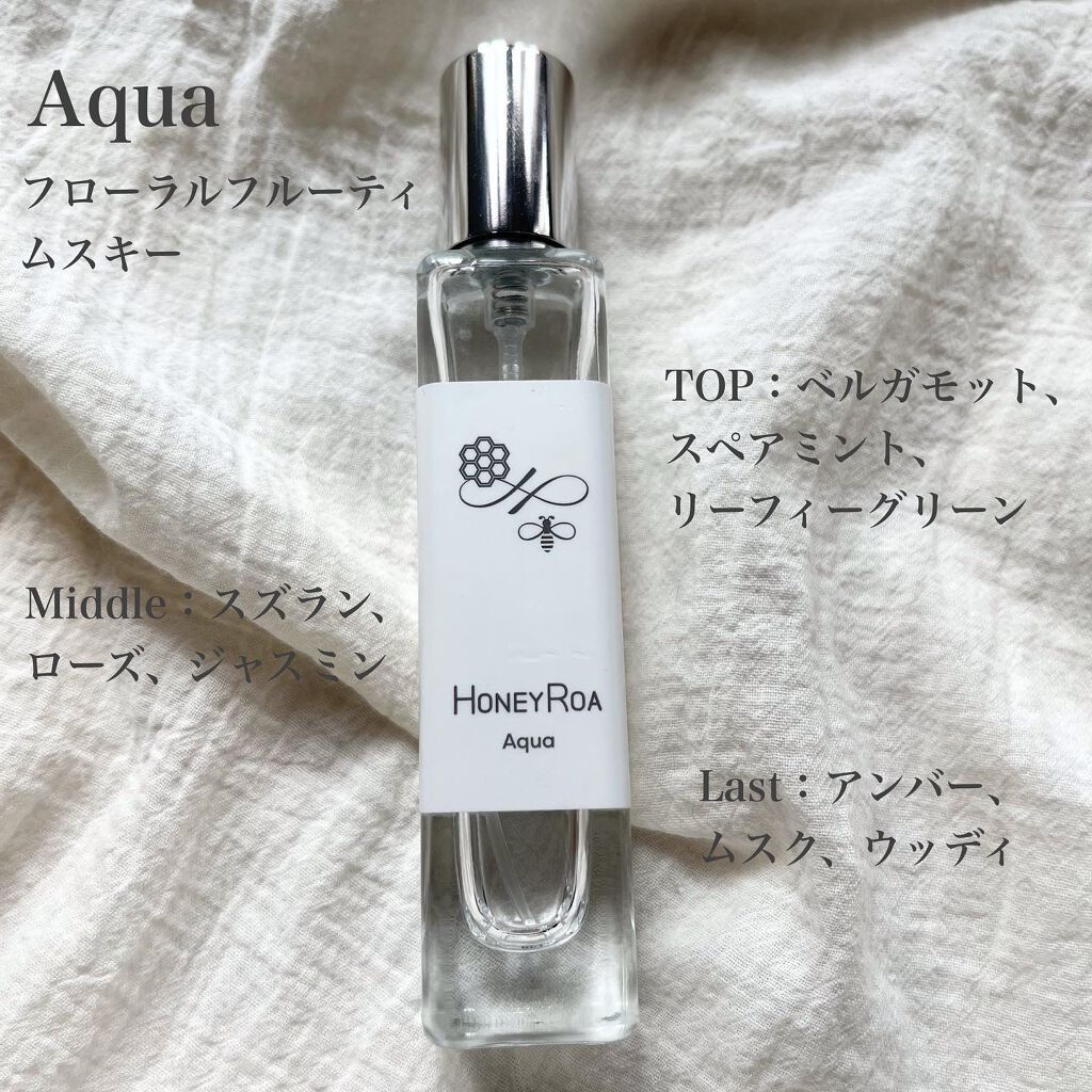 《HONEYROAコレクション》初めて香りをかいで以来大ファンになり、ちょっとずつ集めてきたHONEYROAのフレグランス。しっかり香りのストーリーは楽しめつつ、香り立ちがやさしいので、香水が苦手という方にもトライしやすいフレグランス。15ml/¥2640(税込)なので、集めやすいのも嬉しいポイント!今回は私のお気に入りをご紹介します!愛が溢れて長くなりますが、お付き合いいただけると嬉しいです🙇♂️✼••┈┈••✼••┈┈••✼••┈┈••✼••┈┈••✼•WhiteFog(ホワイトフォグ)前にも投稿で紹介しているくらい好き。「真新しいシーツ」がテーマで、石けんや洗い立てのコットンのようなやわらかい香りです。トップは爽やかな柑橘系、徐々にラベンダーやジャスミンがほのかに顔を出し始め、ラストはムスクのあたたかい香りが残ります。とにかく爽やかでやさしくて、でも色っぽくて、、、全部持っている香りです笑迷ったら絶対手が伸びるくらいお気に入り。・Aqua(アクア)今夏の大優勝香水。テーマは「オアシス」で、とにかくみずみずしい香り。トップはミントが効いた柑橘系で、だんだんスズランやジャスミンのミドルへ。最後はウッディとムスクでクールにフィニッシュ。初めてかいだ時、かなり衝撃を受けました。みずみずしくて爽やかだけど、どこかお香のようなオリエンタルな感じもあり、なつかしさで胸がキュッとなるような、、、ただ爽やかなだけではなく、一度かいだら忘れられないような個性があるので、人と被りたくない方にもおすすめです。ユニセックスに使えるので、パートナーにもプレゼントしました笑・Flora(フローラ)これは今回の4種類の中でも1番フェミニンな香り。テーマは「花の女神」。その名の通り、いきいきとしたお花の香りがします。トップは柑橘系ですが、メインはジャスミンやローズ、スズランなどのフローラル系。意外と最後はムスクやサンダルなどの大人っぽい香りでフィニッシュ。普段あまりフローラル系の甘い香りはつけないのですが、これは甘すぎずすっきりとしたお花の香りなので、とても付けやすいです。男性からも付ける用として結構人気があるみたい!清潔感と明るさを出したい時にぴったりの1本だと思います。・BlackTea(ブラックティー)一時期SNSでもバズってましたね…!「読書と紅茶」をテーマにした香りで、とてもリラックスできるような1本です。トップはセージやマンダリン、レモンですっきりと。ミドルからティーを中心に、ジャスミンなどがやさしく香ります。ラストはホワイトムスク。紅茶思い浮かべながらかぐと、ちょっとイメージとは違うかも?ラストはパウダリーなこともあり、苦みが抑えられた、少し甘めのお茶という印象。これがすれ違う人から漂ってきたら、「あの人さりげなくおしゃれな香りだったな、、、」と気になってしまう感じ笑全体的にとてもスッキリしていて、デイリー使いにぴったりです!リラックスしたい時とかに、しゅっと一吹きすると癒されます。甘すぎたり強すぎたりする香水の香りが苦手な方にもおすすめ!✼••┈┈••✼••┈┈••✼••┈┈••✼••┈┈••✼とても長くなってしまいましたが、とにかくHONEYROAの香りは付けやすいのに人と被りにくいのでどれもおすすめ。香水選びの参考になれば嬉しいです!▼他のレビューはこちらから#Shellyの香水レビュー#honeyroa#ハニーロア#ハニーロアフレグランス#香水コレクション#香水好きな人と繋がりたい#香水レビュー#コスメ#コスメレポ#コスメ紹介#コスメレビュー#コスメ好きな人と繋がりたい#コスメマニア#コスメ大好き#コスメ垢#コスメ記録#コスメ