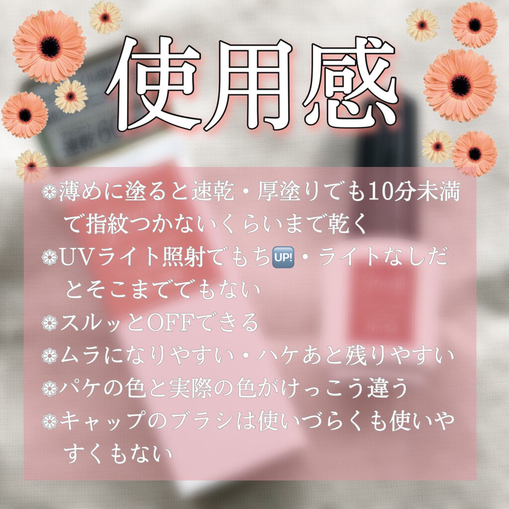 Ciao!いりーな٩(ᐛ)وです今回の投稿はネイルです〜💅最近セルフに変えたので色やメーカーのお気に入りを探し中です🏃♀️今回は"ジーニッシュNo.54カメリア"です💁♀️❁使用感❁ほとんど画像に載せたので短めに✂︎薄めに塗れば1〜2分で...