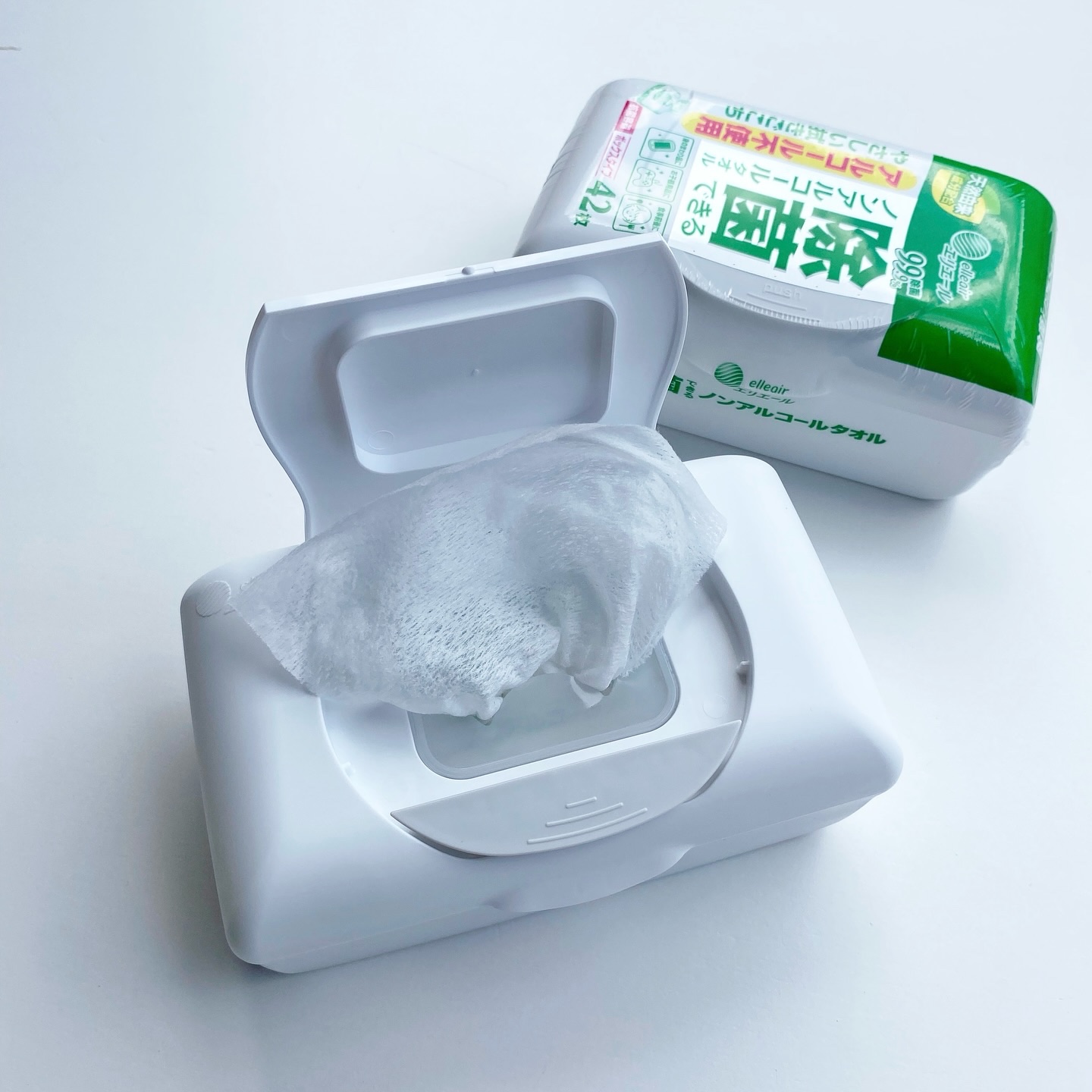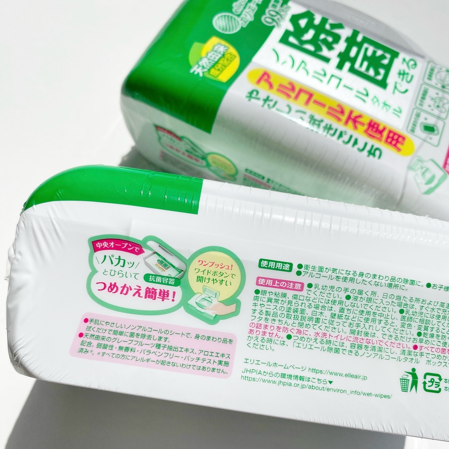 エリエール除菌できるノンアルコールタオルボックスはノンアルコールだから子どものおもちゃ除菌にも使いやすい!ワイドボタンだから開けやすくて1枚ずつサッと取り出せるの⋆程よい厚みがあるシートだから両面使っても乾きにくくて使いやすかったよ!ボックスはワイドボタンだから片手でも開けやすくて、裏に滑り止めがついているところも嬉しい♡
