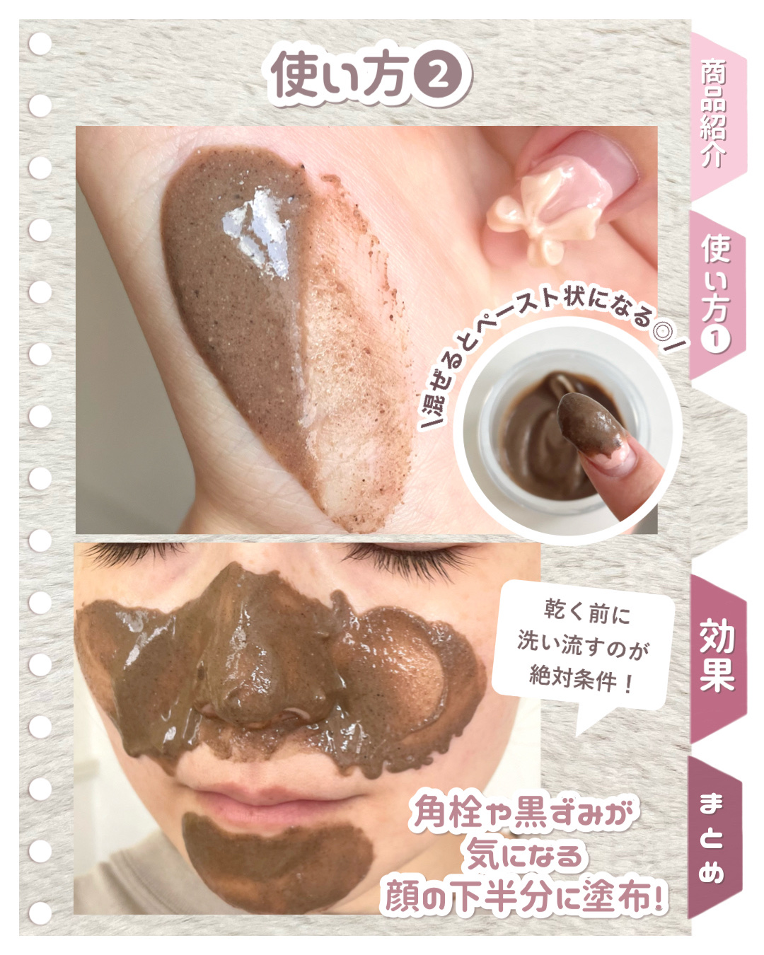 角栓に効果があるのは、写真見てもらえればわかってもらえるかなっておもうんやけど、それだけじゃなくて、余分な皮脂を取り除いてくれる効果もあるので、脂性肌や混合肌のかたにもおすすめ😭✨ で、700円でこの効果でこの量入ってって、ほんとにコスパおかしいと思う😂(いい意味で) マージーで毛穴汚れ気になってる人1回試してみて欲しい!!!ほんとに感動するから😂 私は次見つけたらストック買いします🫡