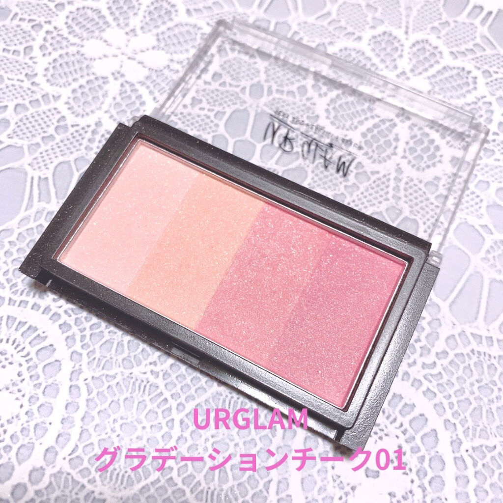 ❁︎URGLAMグラデーションチーク❁︎URGLAMの新作を見つけました☺️💓見た目も最高なグラデーションチークです👏🏻✨4色のグラデーションからなるチークで、100円でした👍🏻✨色展開は4色で、01.プラムピンク02.ピーチピンク03.アプ...