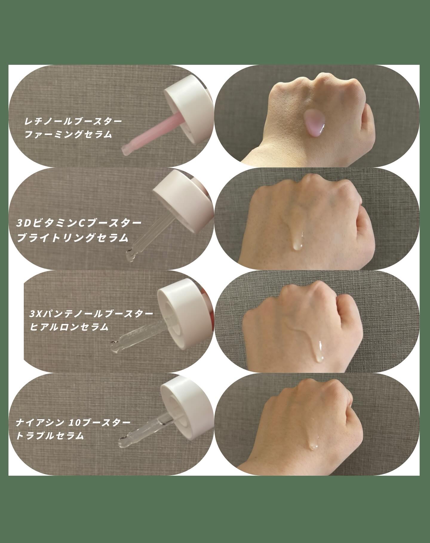 レチノールブースターファーミングセラムビタミンAシートマスク▶︎乾燥して弾力が失われた肌に!ビタミンB12特有のピンク色を帯びたファーミングセラム🩷紫外線による変性を防ぐためリポソーム化されたレチノールは、高い吸収力で角質層まで純粋なビタミンを届けてくれる✨とろーりタイプ。ゲーム⚫︎ーイのミルキーピンクを思い出した笑香り独特だけどじんわりで⚪︎3DビタミンCブースターブライトリングセラムビタミンCシートマスク▶︎乾燥してくすんだ肌が気になる方に!肌のキメや肌トーンを整え、メラニンの生成を抑え、乾燥によって気になるくすみに💫ビタミンC誘導体、ナイアシンアミド5%を配合✨無色透明サラサラ系香りもなくて使いやすい。3XパンテノールブースターヒアルロンセラムビタミンBシートマスク▶︎インナードライ、カサツキが気になる方に!肌の角質層までうるおいを与えてくれる🫧パンテノールや超低分子ヒアルロン酸5%を配合✨のびよい!美容施術後の乾燥がやばいので使ってる。クセなく使いやすくて一家に一本系。ナイアシン10ブースタートラブルセラムレッドブレミッシュクールスージングマスク▶︎乾燥や外的刺激による肌荒れなどのトラブルができやすい肌に!乾燥や外的刺激によるトラブル中やアフターケアにも⚪︎ナイアシンアミド10%&BHA&亜鉛配合✨大本命。リニューアル前からずーっとクールマスク好きなので日々ウキウキしながら使用!少し重めベタつきなしなので使いやすい。何故かコレだけ7枚入りがない。あったらすぐ買うのにな〜#PR#drg#ドクタージー#セラム #美容液#韓国スキンケア#肌悩み#ビタミンセラム#ビタミン#弾力#美白#トラブル#水分 #パック #マスク@dr.g_official_jp