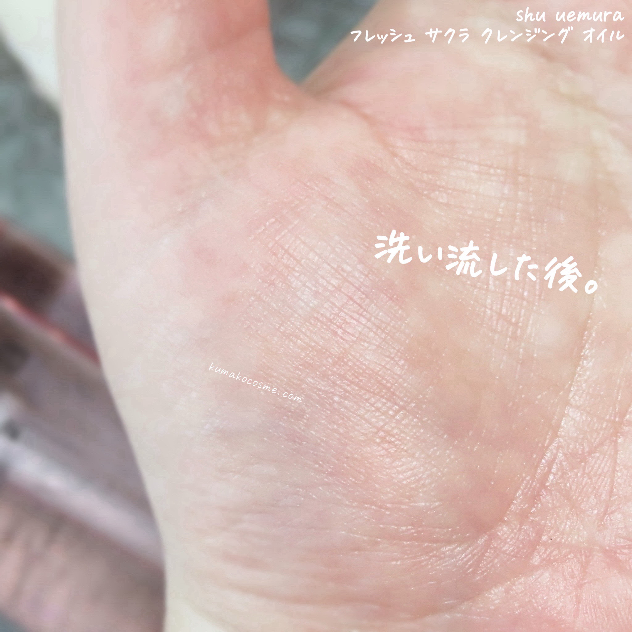 しっとり保湿 香りは、よくある「桜の香り」というより、自然でフローラルな優しい感じで、癒されます♪ しっかりアイメイクも落ち、水で流すと、毛穴が目立たないような滑らかな感じに。