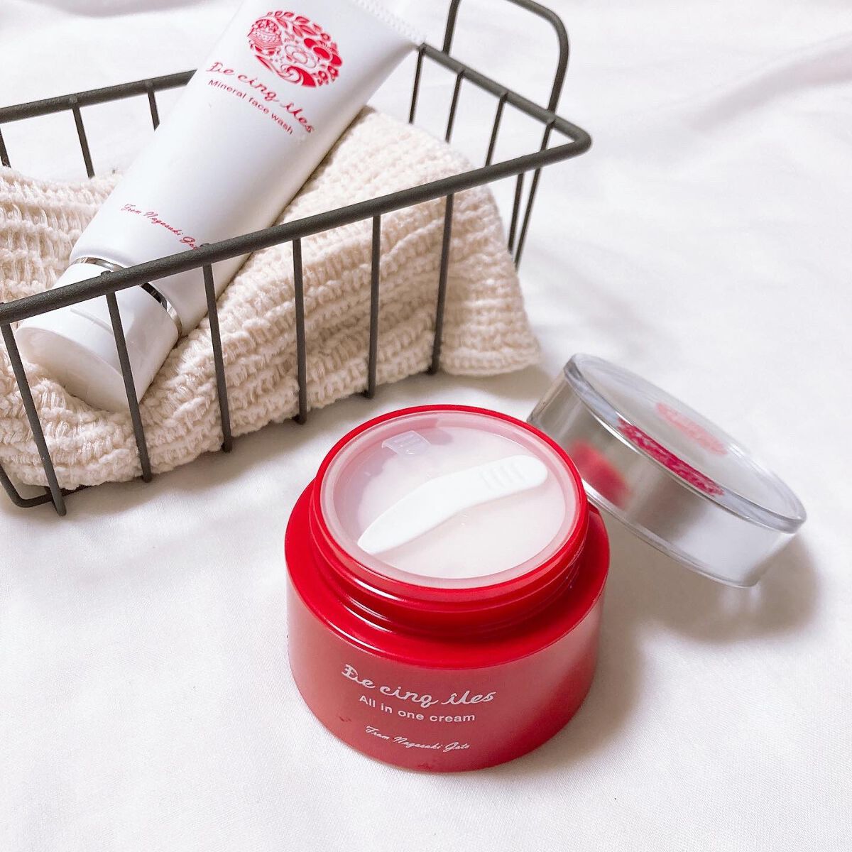 スパチュラ入なので指で取りたくない自分には助かりました(ㅅ´˘`)♡洗顔後‼️肌に塗ってみると👀‼️クリームなのに………ジェルのような瑞々しさもあり♡クリームのようなしっかりとした♡保湿力もあり♡̷♡̷肌はしっとり表面はサラッとタイプが好きな自分にはピッタリなオールインワンクリームだと思いました(。˃ᵕ˂*)。.*・.時間がある時は…⏰化粧水とコレにする時もありますが😊これ1つでもふっくら保湿力もあるので時短スキンケアになっています(¬‿¬*)香りも無臭で!!使いやすいオールインワンクリームです‼️