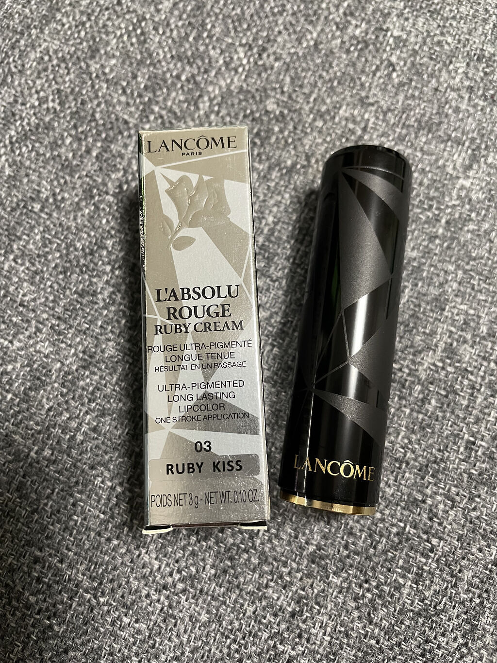 LANCOMEラプソリュルージュ R03 ルビーキス4,400円税込宝石のルビーをイメージしたリップスティック💎ルビーをイメージして、カッティングされた特徴的な美しくビジュアル。従来のラプソリュルージュCに比べ、ピグメントを25%増量。色落ちしにくく、鮮やかなルビーカラーを楽しむことができる。さらにサテンのような滑らかなタッチで、スルスルと心地よく伸びるだけでなく、ふっくらと柔らかな唇に整えてくれる💋✨最近はなかなかリップの在庫が減らないので、自分でリップを購入することはないのですが、LANCOMEのポイントプレゼントでお得にもらえるチャンスがあったので、結局はリップ好きなのでもらうことにしました😭ローズ系なので、顔色悪くなるかも⁉️と思いましたが、口コミなど拝見して発色がよく色味も明るいようでしたので良かったです😊マスク生活にも助かる、色落ちのしにくさも🙆♀️そして何より、リップのカッティングが素敵🥺美しすぎて使えない💦しばらくは眺めていたい🥲マスクの中でもしっかりリップメイクをして、気持ちも華やかに、そしてリップをどんどん使って在庫を減らします🥺