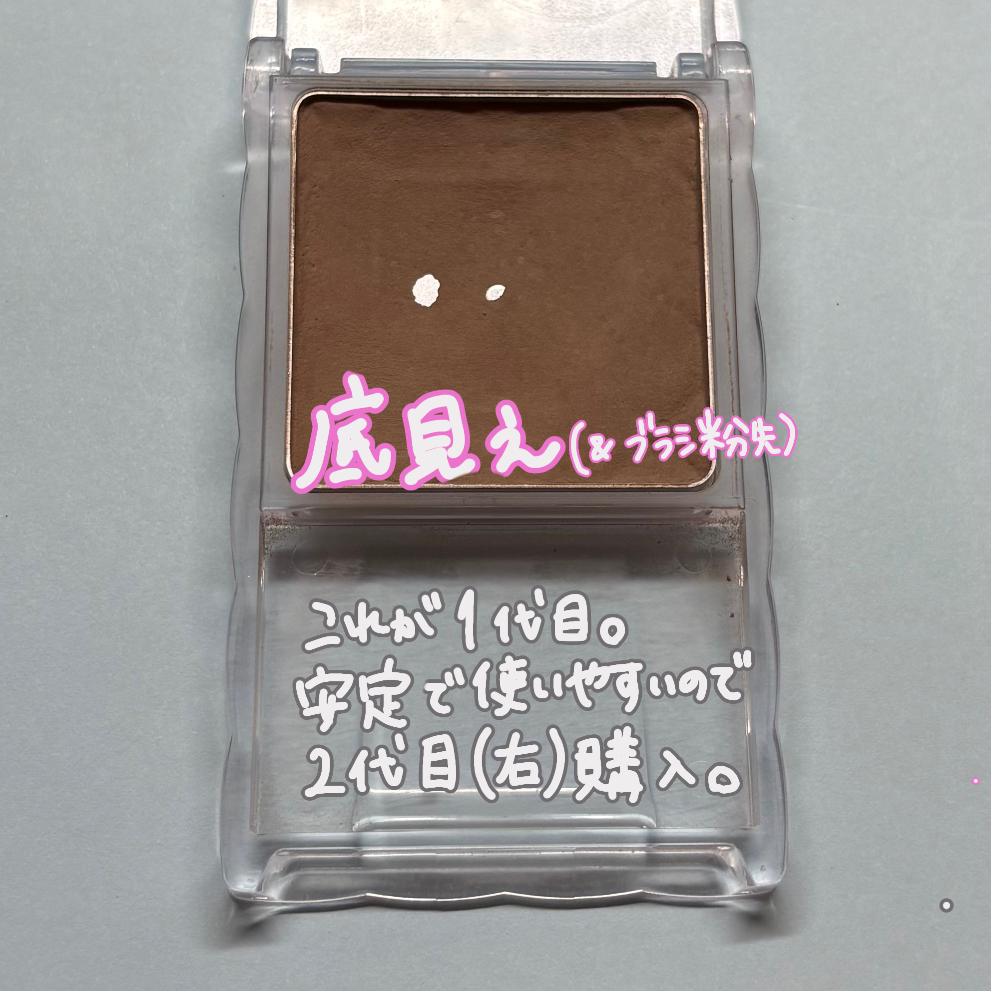 コスパもカラーも最高!!しっかり底見えコスメ✨👏イエベだけどグレー感のあるものがいいとおもっていたけどこんなにコスパ良く手に入れられて嬉しい🫶旧版のブラシは結構良くて、小鼻のシェーディングに向いてと思った!もう少しで無くなるからダブルエンドのブラシも含めて、新版使うの楽しみ🫶