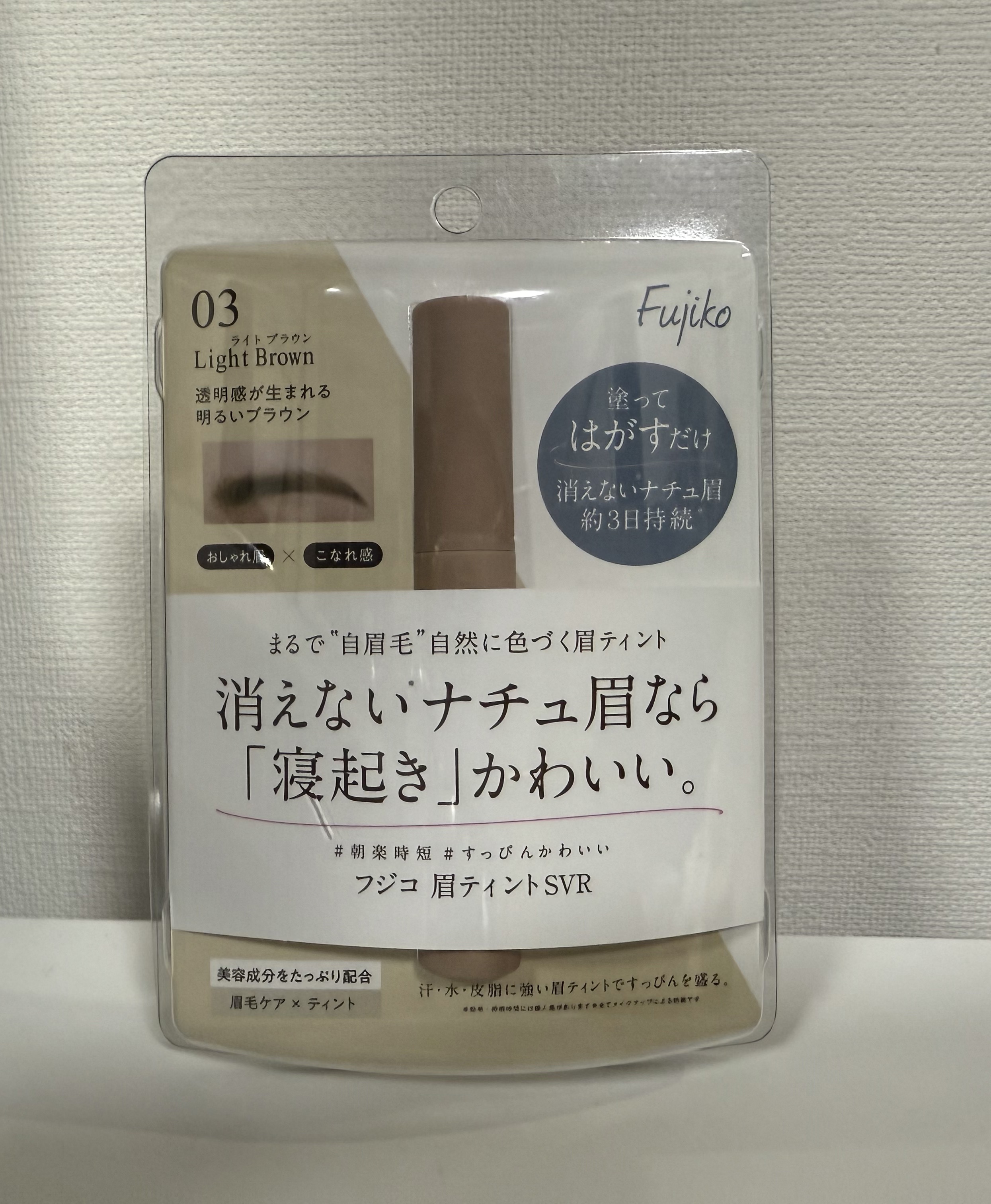 Fujiko眉ティントSVR03ライトブラウンこれはずっとリピしてる!髪が明るいのと眉毛が薄めですっぴんの時黒眉で薄くてなかなか可愛くないけどこれで書いとくとすっぴんも平気になる。やっぱり眉毛は大事だからお風呂行くとか旅行の時とかは眉ティントしておくとモチベもあがる!ないと不安なのでなくなりそうになったらすぐリピする