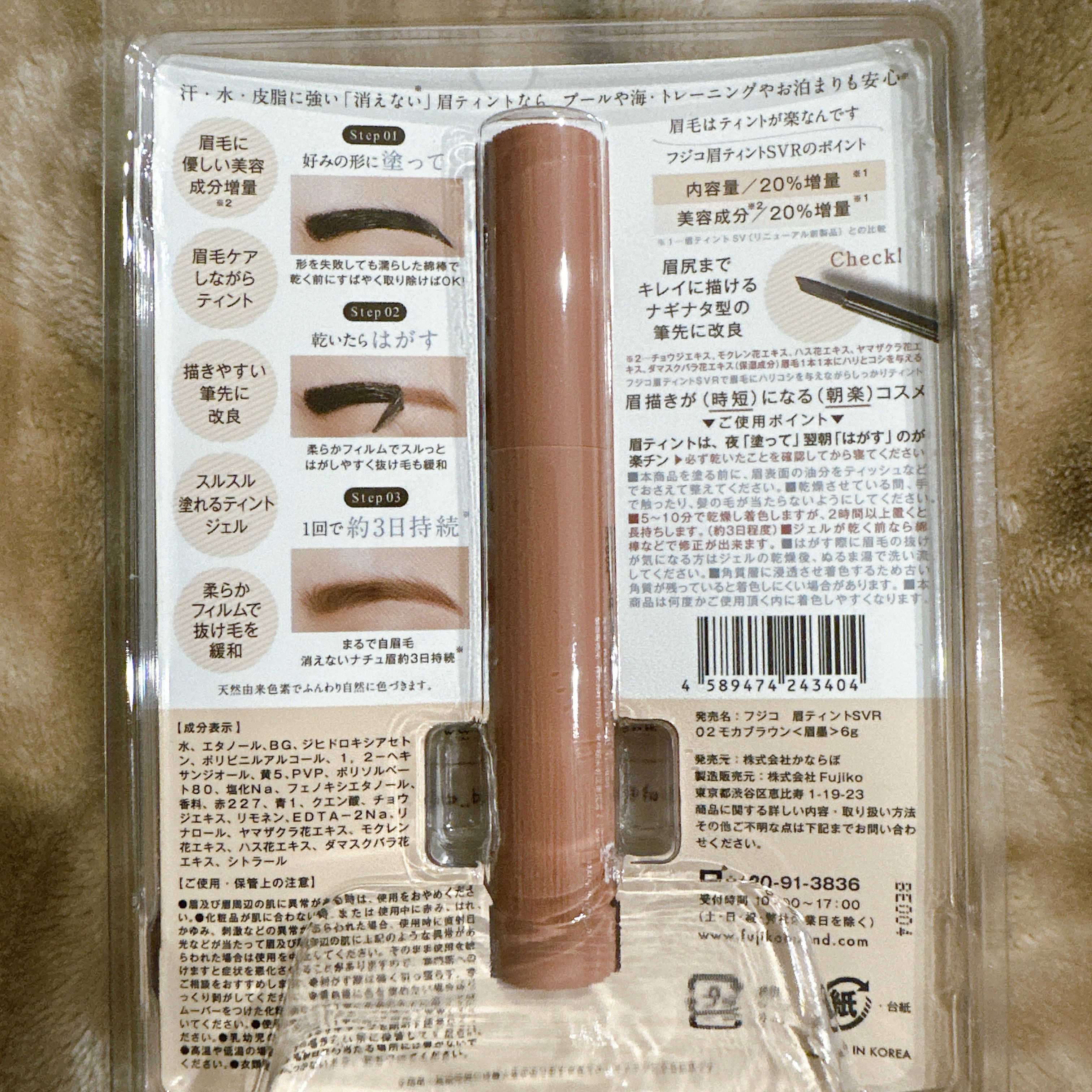 久々にイモト眉やりました。笑◆Fujiko(フジコ)眉ティントSVR02モカブラウン1,485円4色展開で01ショコラブラウン03ライトブラウン04グレーブラウン(WEB限定色)があります今回は02モカブラウンを購入しました。数年前にも使用し...