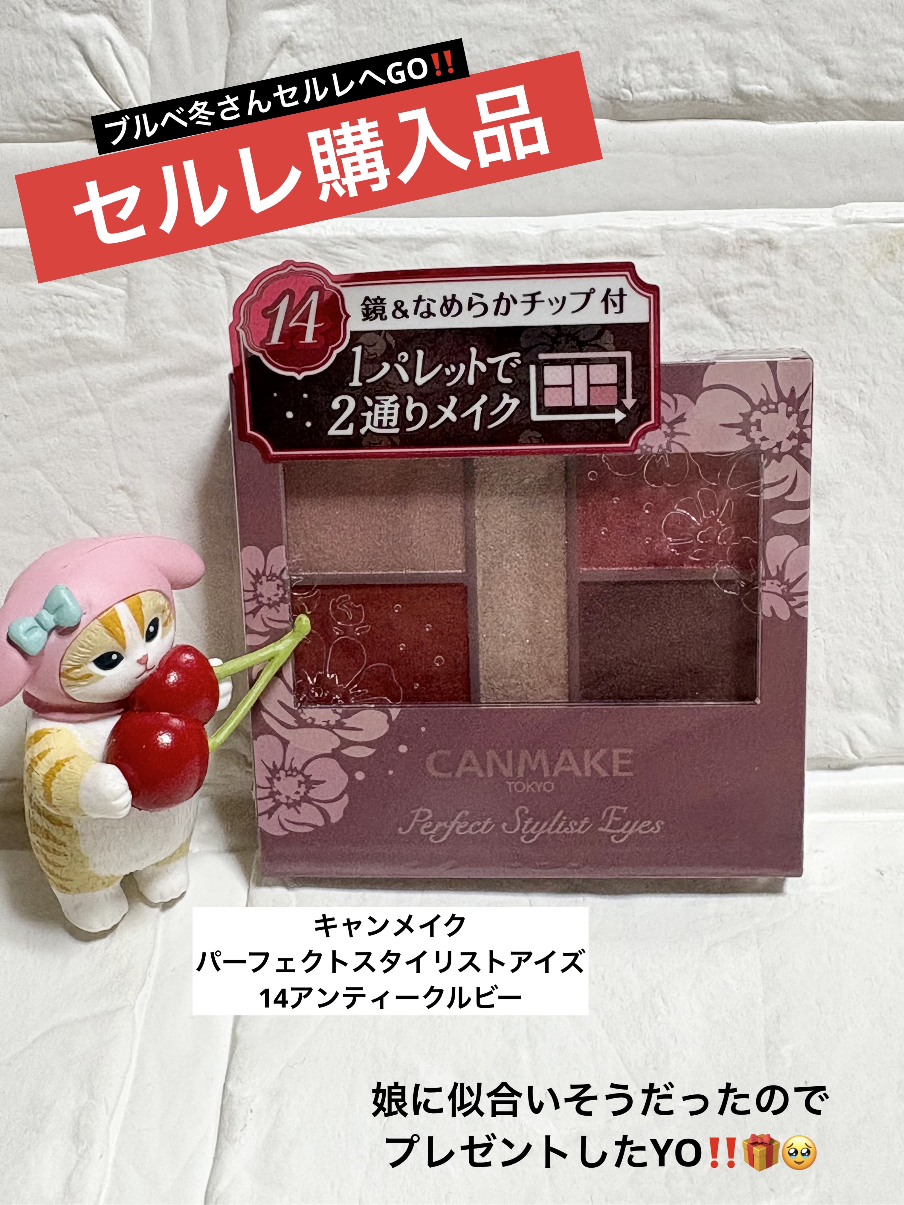 #ブルベ冬かもしれない娘に🩵【セルレ購入品】 県内のアウトレット内のセルレにて うちの娘に似合いそうだなぁと思い 買ってみたYO‼️❤️キャンメイクパーフェクトスタイリストアイズ 14アンティークルビー 基本的に イエベ春&盛り耐性なしの私が塗ったら ド派手になりそうな色味は 盛り耐性ある&多分ブルベ冬の娘には しっくりきたりする (悔しいが、娘はママンより大人顔でもある) 娘にあげたら『結構派手じゃね⁉️』 『だけど使えそー‼️』 『ありがとね』 との事🤣🤣🤣 大丈夫だ👌娘なら使いこなすと思ふ🤗
