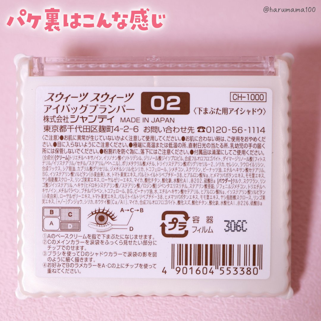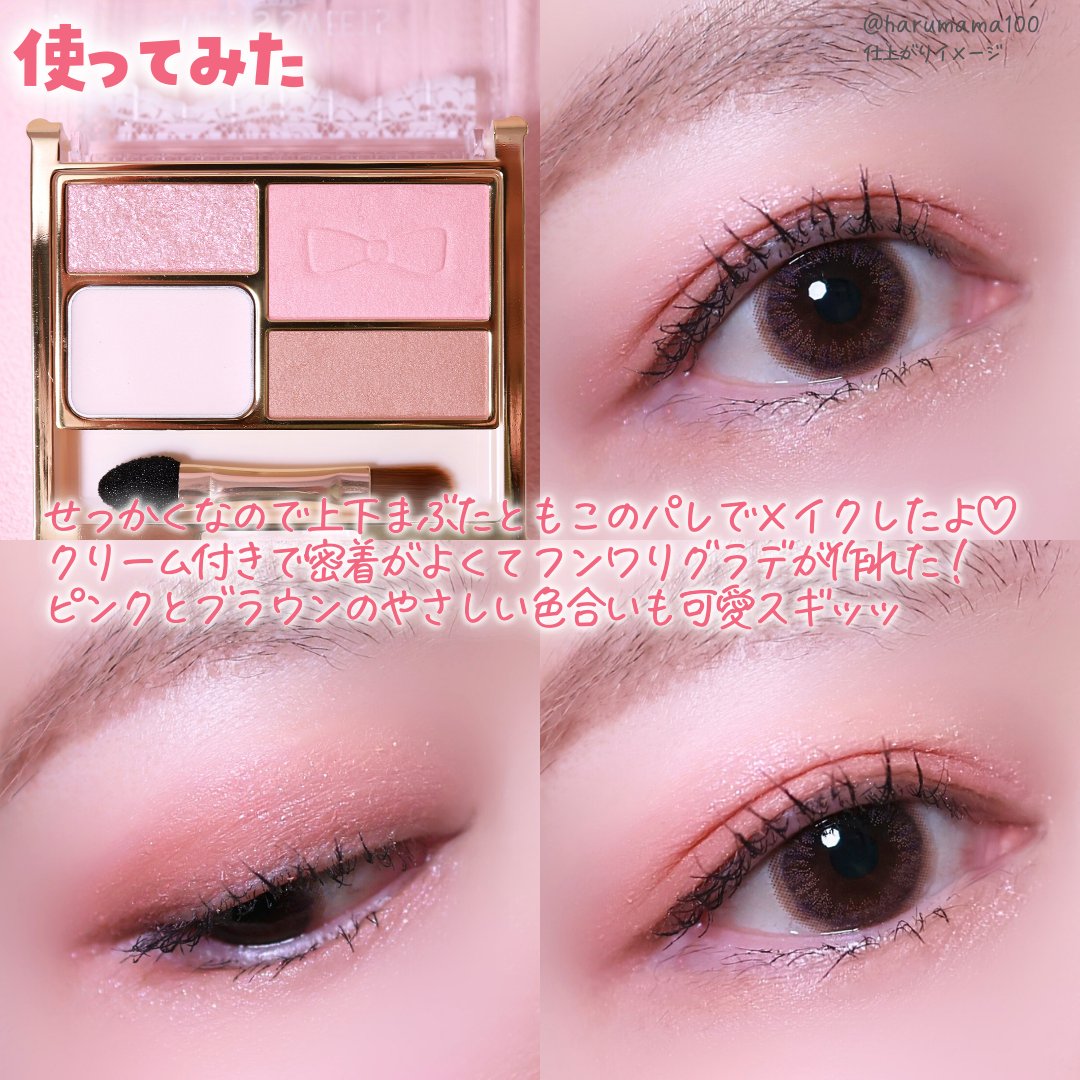 【可愛げピンクてあしらう💞涙袋パレ♡】───────────────スウィーツスウィーツアイバッグプランパー02ピーチピンク1,100円(税込)───────────────なにか欲しいな〜とLIPSショッピングを眺めていたら見つけた!!レースとリボンのパケがめーっちゃ可愛いアイシャドウ♡ネーミングの”アイバッグ”って涙袋のことなんだそう。だからかなのか?ふんわりカラーの配色で締め色の代わりに影色が入ってるよ〜♪しかも!ベースクリームがセットになっているから密着が良くなってグラデも作りやすいの🥹うれし〜。カラーはふわふわ印象のやわらかい雰囲気。イエベのわたしが使うとブラウンの主張が強くなったからピンクぽく見せたいときはピンクをしっかり+ブラウン控えめに塗るのがいいのかもしれない。主張しすぎない控えめラメもめちゃ可愛くて・・・!!デイリー使いやオフィスメイクにも取り入れたい!ぜひチェックしてみてね💕───────────────#コスメ購入品#スウィーツスウィーツ#sweetssweets#アイメイク#アイシャドウ#涙袋#LIPSショッピング#春コスメ#春メイク#先取り春顔メイク