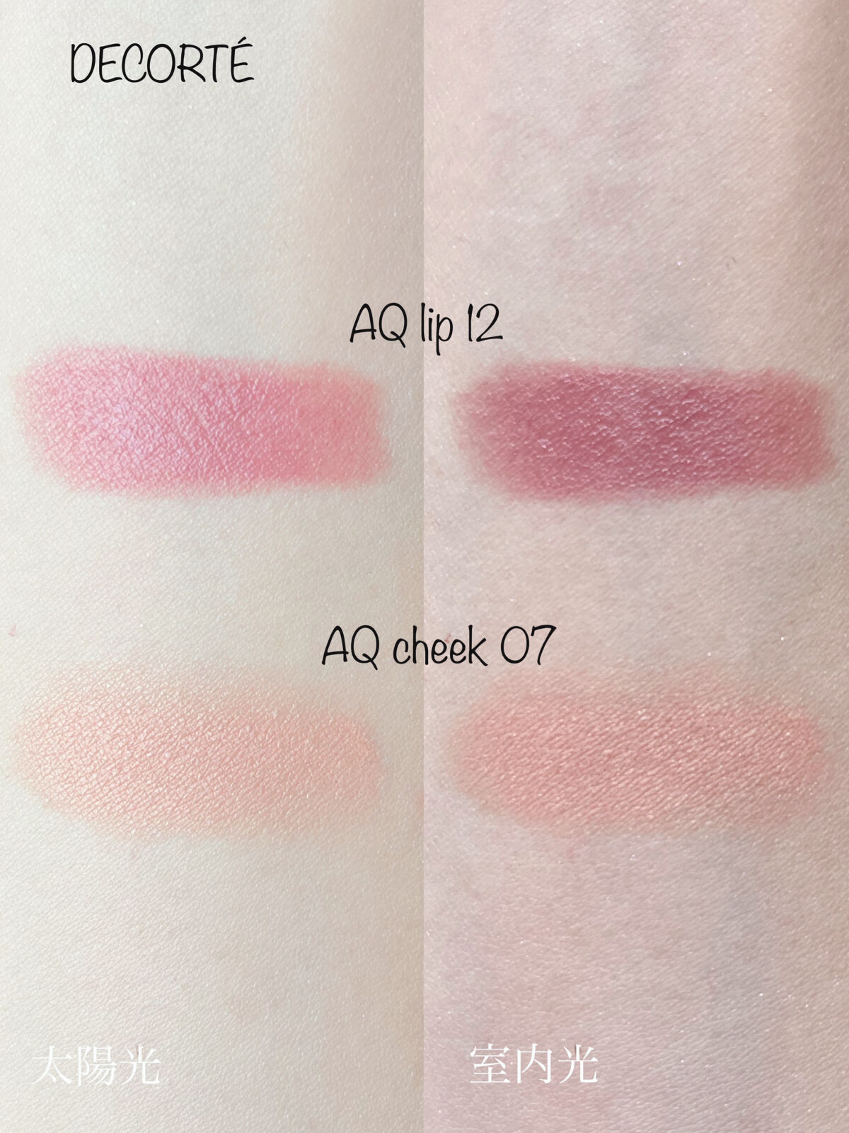 誰もが似合う色‼︎って豪語出来る万能color‼︎大人のピンクベージュlipとcheek♡DECORTÉAQシリーズは、質感がもう最高!!パケは高級感があり、さらにメイクの仕上がりまでもとてもお上品に♡すごく肌に馴染むので誰が使っても失敗知らず。悪いところが見つからない!!あっ!値段…かな?笑でも、この値段なら納得!◉DECORTÉAQリップスティック12このlipヤバイ!!最高♡まじ、ピンクベージュ好きって人は、絶対絶対絶ーっ対試してみて欲しい!!!!すっっっごい良い色‼︎まじ、買って良かったーーーー!!!!初めは薄いかな?と思ったけど、しっかり薄膜で唇全体を優しく色付けてくれ、とにかくお上品な仕上がりに♡保湿効果も高いので長時間乾燥しません。色味が絶妙で、とにかく可愛いー♡♡しかも凄いのが、色白さんから色黒さんまでしっかり浮かずに似合う万能カラー!!嘘みたいだけど、ほんとに♩百聞は一見にしかず!ピンクベージュ好きさんはもちろん、自分にぴったりのピンクベージュを見つけたい!って方、わたしには似合わないと諦めてる方、まずこちらを一度見て試して欲しいです!!◉DECORTÉAQブラッシュ07こちらのcheekもまた素晴らしいです!薄いかなーと思いきや、ほんのり馴染みながらもお顔をパァっと明るく華やかにしてくれます!ローラメルシエ11GUAVAのような薄さではないです。そしてlipと同様、嘘のようですが色白さんから色黒さんまで幅広く使えます◎絶妙なベージュで色白さんがつけると品ある大人の雰囲気に、色黒さんがつけると可愛らしく発色します♩そして全然くすみません!このcheek07は、アイシャドウやリップ、どんな色とも相性抜群◎可愛らしく〜大人っぽくまで幅広く活躍してくれます。粉質もしっとりしていて、ふんわり馴染み、長時間付けたてをキープ。こちらも文句なしです!cheekをつけると顔色がくすんじゃう方、自然に馴染むカラーをお探しの方、どんな色とも合わせて使える万能カラーをお探しの方にとてもおすすめです◎デートに、お仕事に、女子会からママ会まで、どんな場面でも品よく最大限に美しさを引き出してくれる、まるで魔法のような素晴らしいlip&cheekです!お値段がするので、ぜひ店頭で機会があれば試してみて欲しいです!!絶対ベージュ好きなら気にいると思います♡