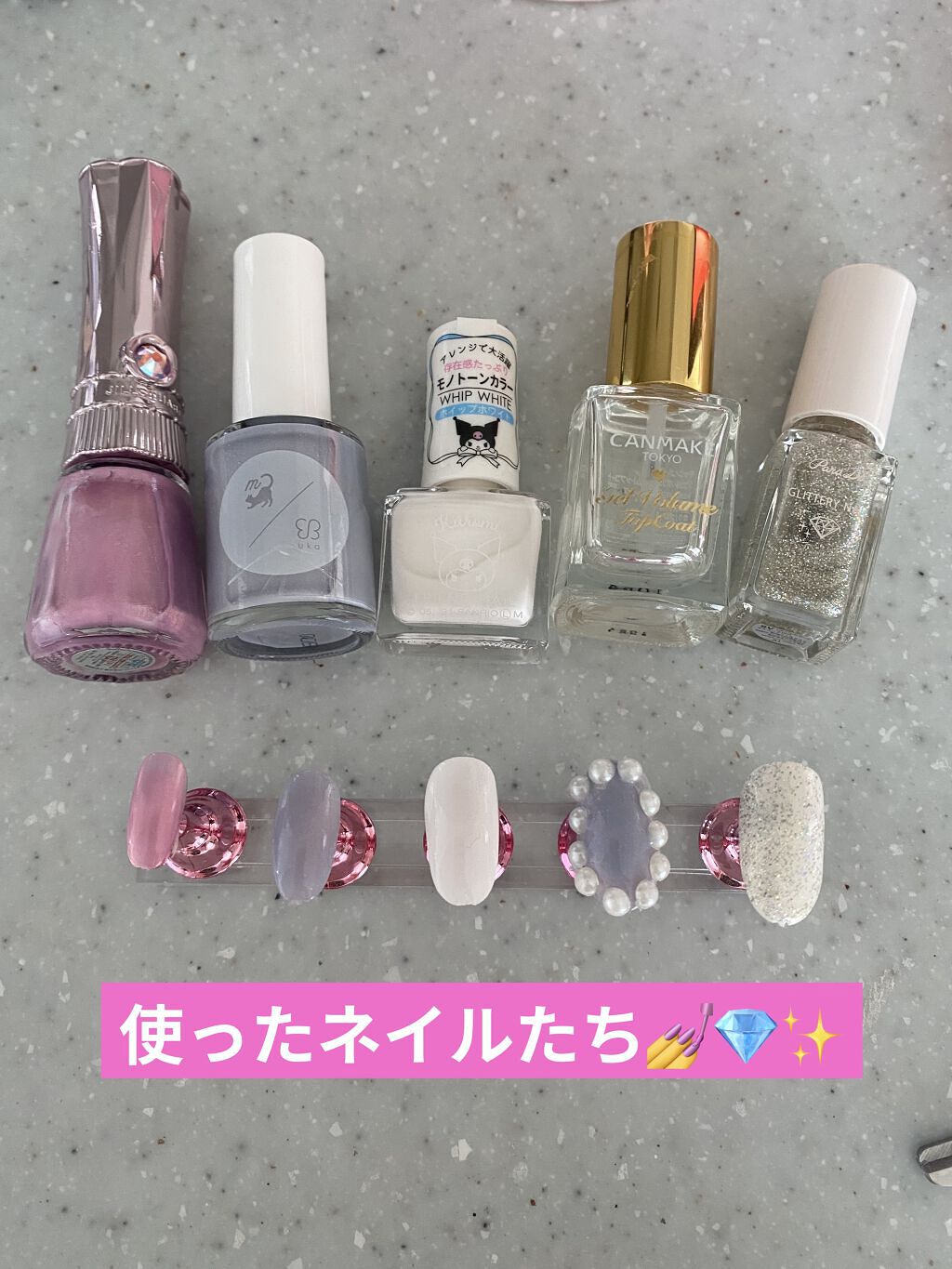 りんちゃんといえば、ギャルで可愛くて綺麗😍りんちゃんのネイル真似したくてやってみました笑 使ったネイルは、 親指 ♥️DAISOサンリオネイル ホイップホワイトにパラドゥリトルジュエリーコフレを上から塗る 人差し指 ♥️VOCE 2021年9月号付録ukaネイルにダイソーのパールシール(ネイル用❌)パールつけるのが難しかったです😭 中指 ♥️DAISOサンリオネイル ホイップホワイトにシール 薬指 ♥️VOCE 2021年9月号付録ukaネイルにシール 小指 ♥️JILL STUARTネイルラッカー 15th 03orchid star 単色塗り