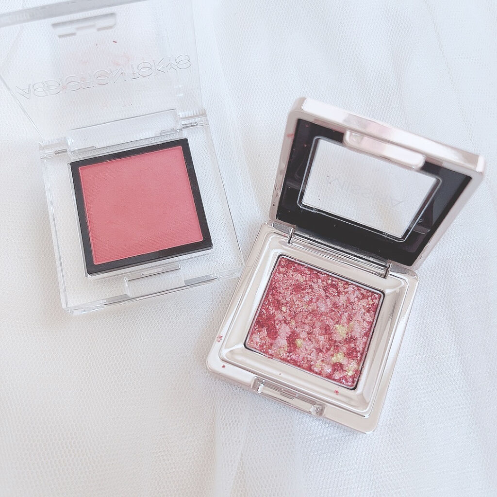 ミシャの方は見た目もマーブルでとても綺麗で、色はかなり薄いですが、ツヤ感がとても綺麗です! アディクションの方は明るめのピンク系です。 マットシャドウ好き💗 発色も、粉質も良いです。 ミシャを上下瞼に塗ってから、アディクションを目尻の方に塗りました。 どちらも使いやすくて良きですよ🙆♀️