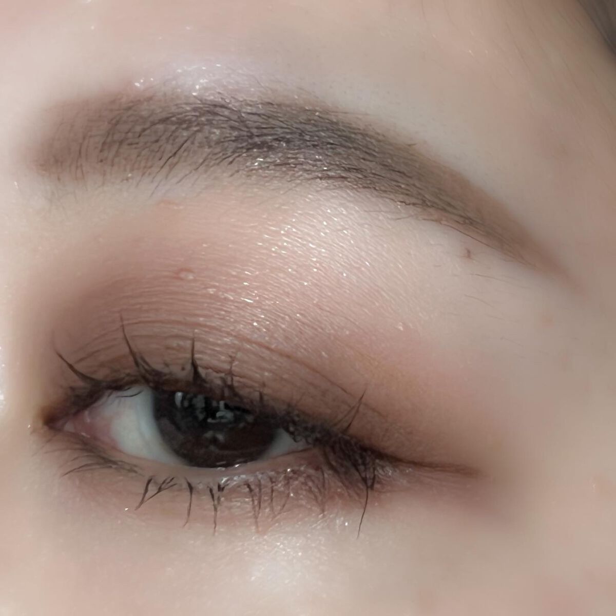 色はほぼ出ず! ほんのりニュアンスのっかったかな?くらい。 でもラメた〜〜っぷりです🥳💓 多色ラメ、やっぱりテンション上がります🥰 目尻側に少しトリュフ入れるだけで やんわりだけどちゃんと締まる! 濃すぎない締め色はが欲しいときはいつもトリュフです💃🏼 こーゆーメイクは目元が軽く見えるから これはこれで好き😎✌️