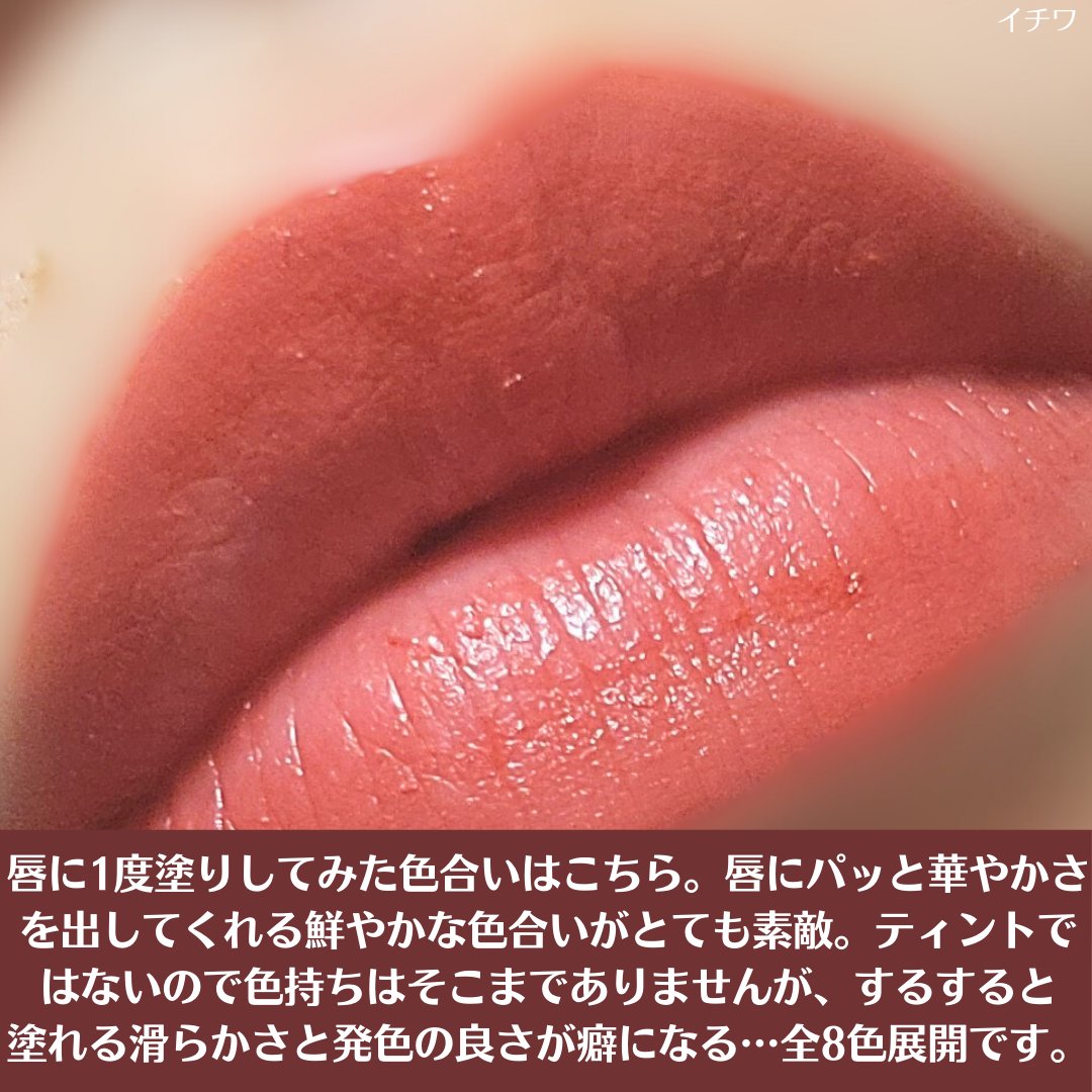 | 口紅・グロス・リップライナーランキング第8位 | 全色どこかまろやかさを感じる発色で デイリー使いしやすい粘膜の延長のようなカラー | 詳細を見る | |